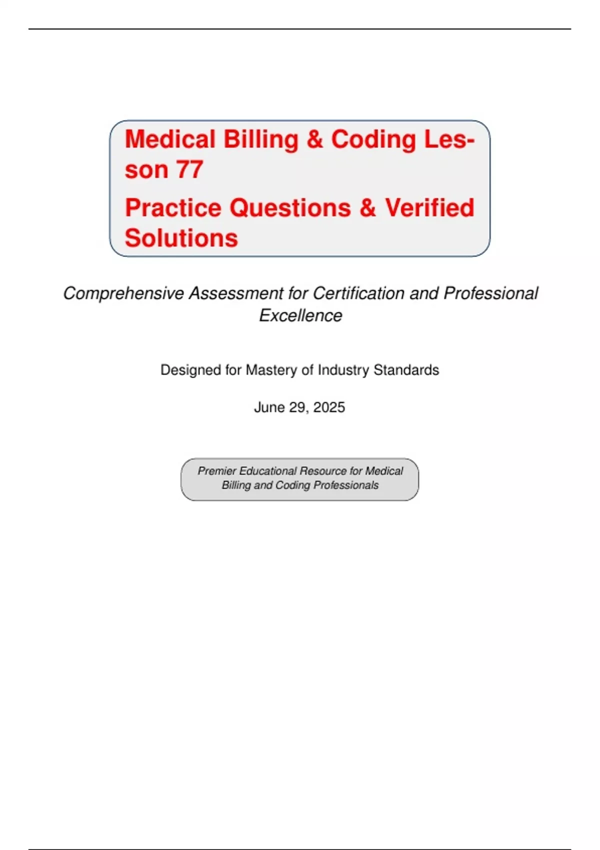 This document represents a meticulously crafted exam for Lesson 77 of the Medical Billing