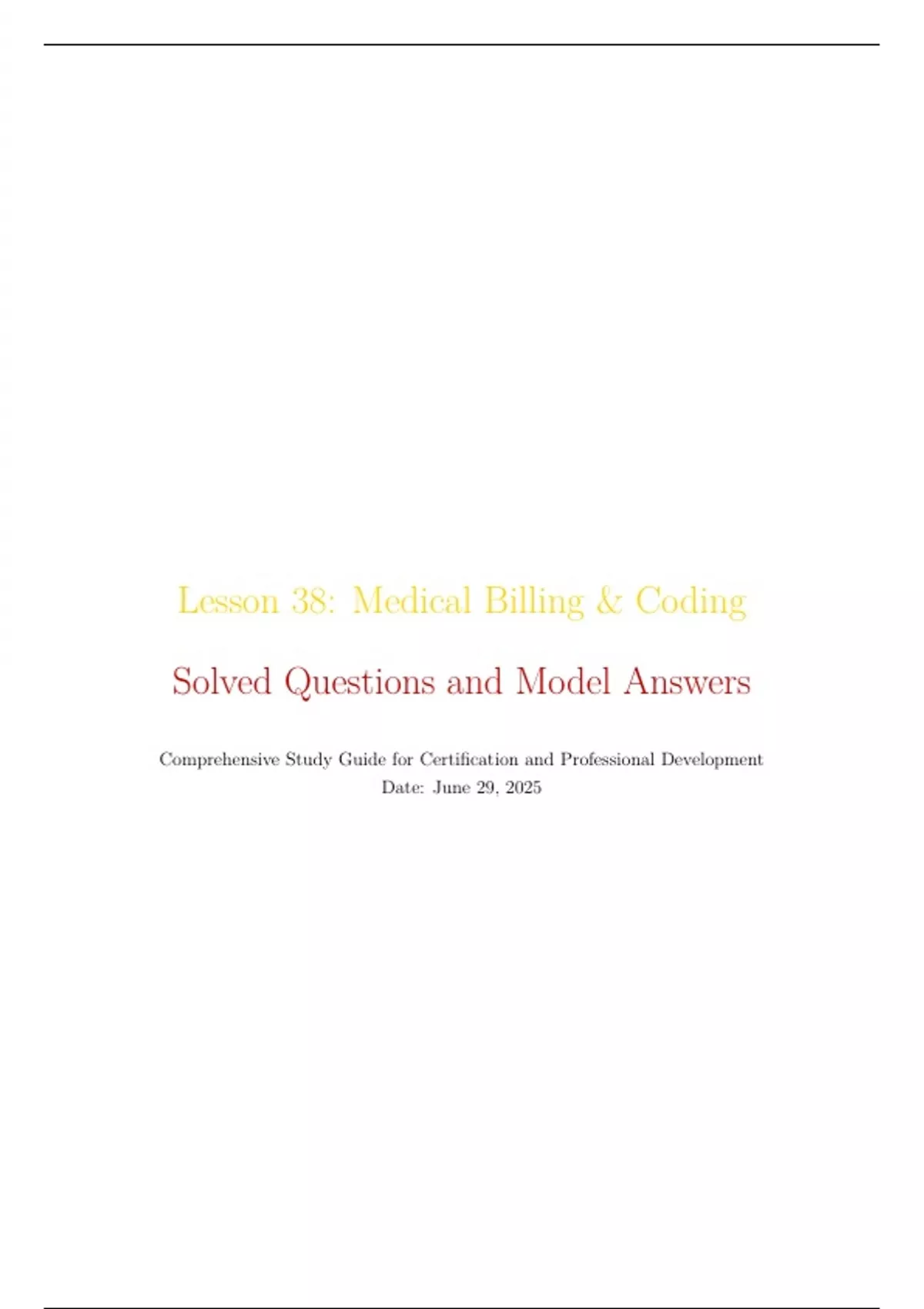 Lesson 38: Medical Billing & Coding Solved Questions and Model Answers Comprehensive Study Guide for Certification and Professional Development Date: June 29, 2025
