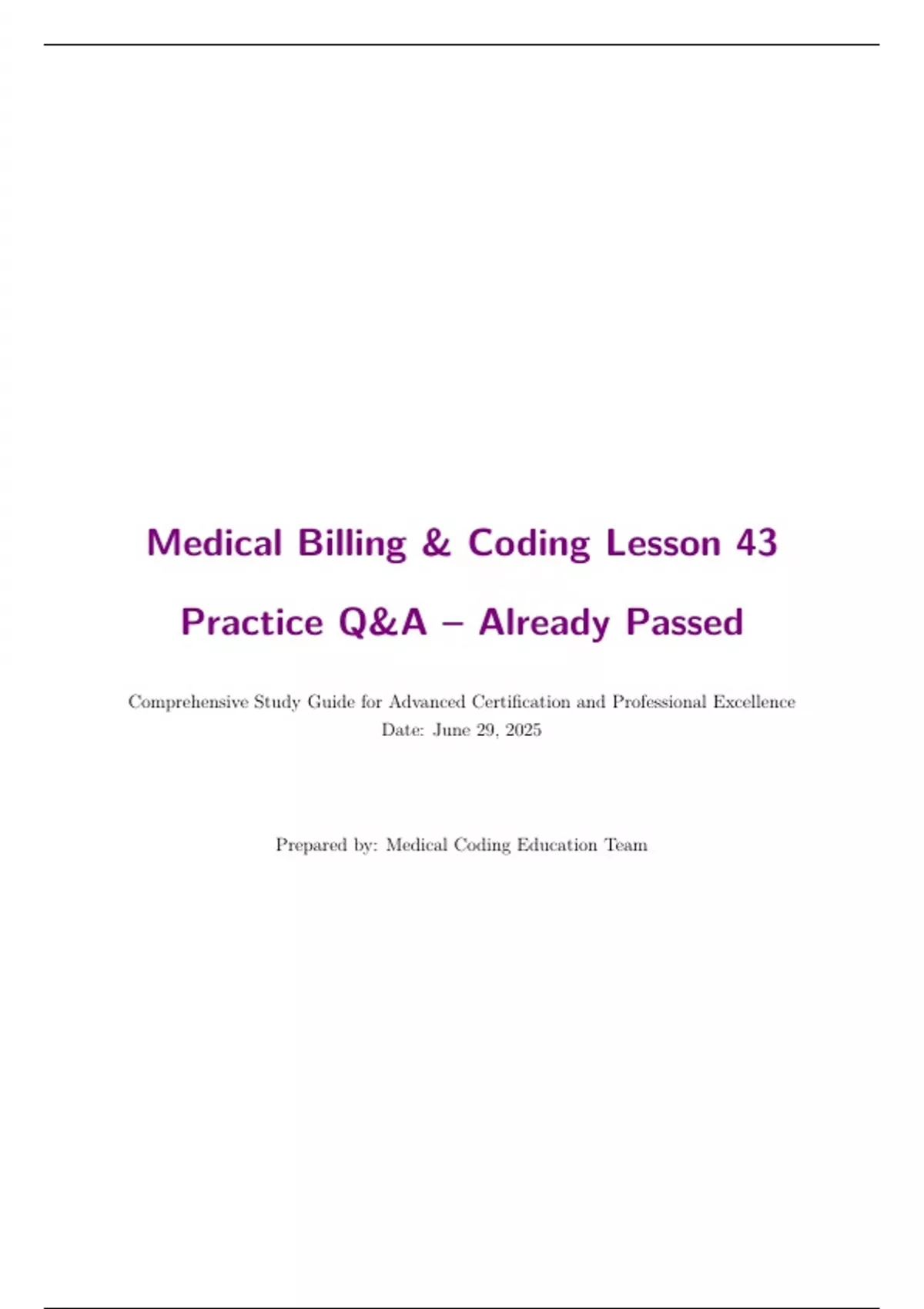 Medical Billing & Coding Lesson 43 Practice Q&A – Already Passed Comprehensive Study Guide for Advanced Certification and Professional Excellence Date: June 29, 2025 Prepared by: Medical Coding Education Team
