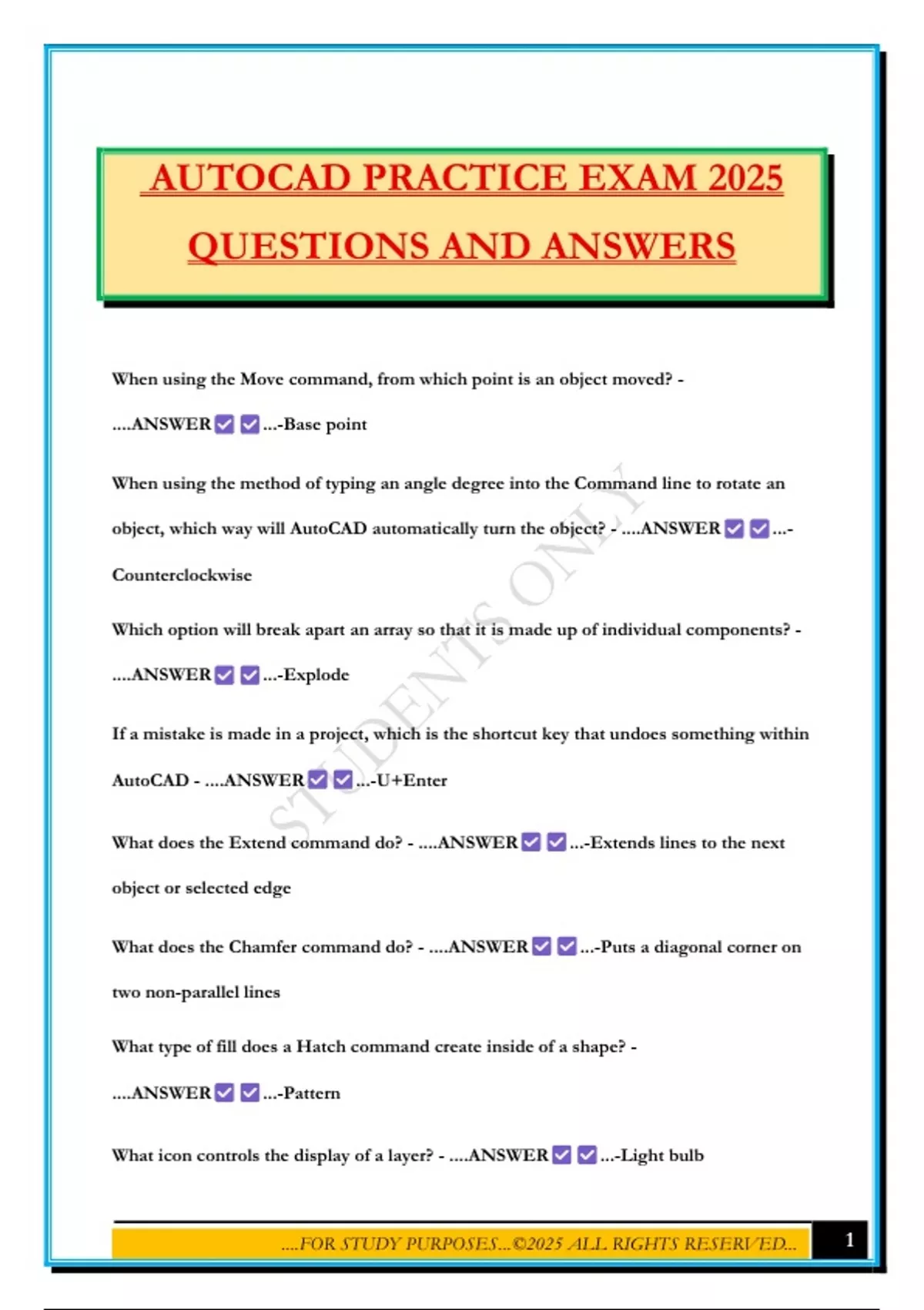 AUTOCAD PRACTICE EXAM 2025