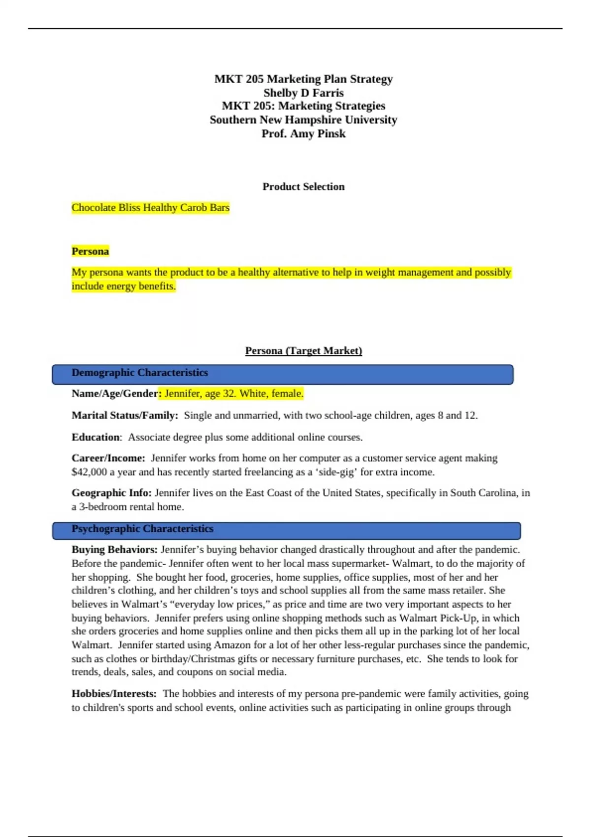 MKT 205 Marketing Plan Strategy