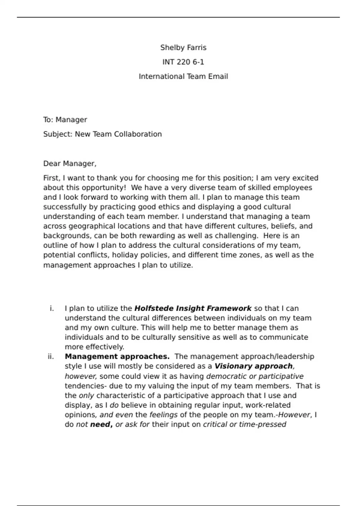 i. I plan to utilize the Holfstede Insight Framework so that I can