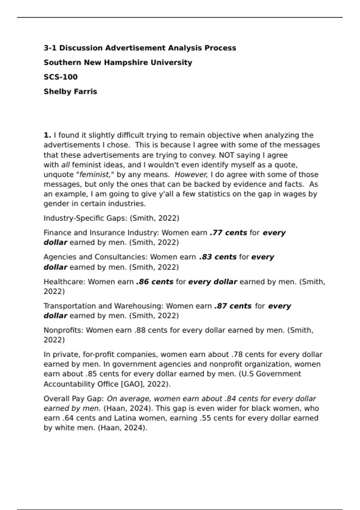 an example, I am going to give y'all a few statistics on the gap in wages by