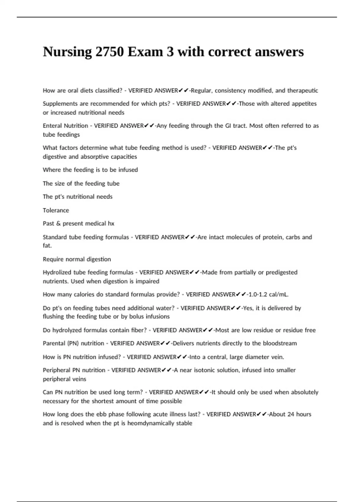 Do |pt's |on |feeding |tubes |need |additional |water? |- |VERIFIED |ANSWER✔✔-Yes, |it |is |delivered |by |