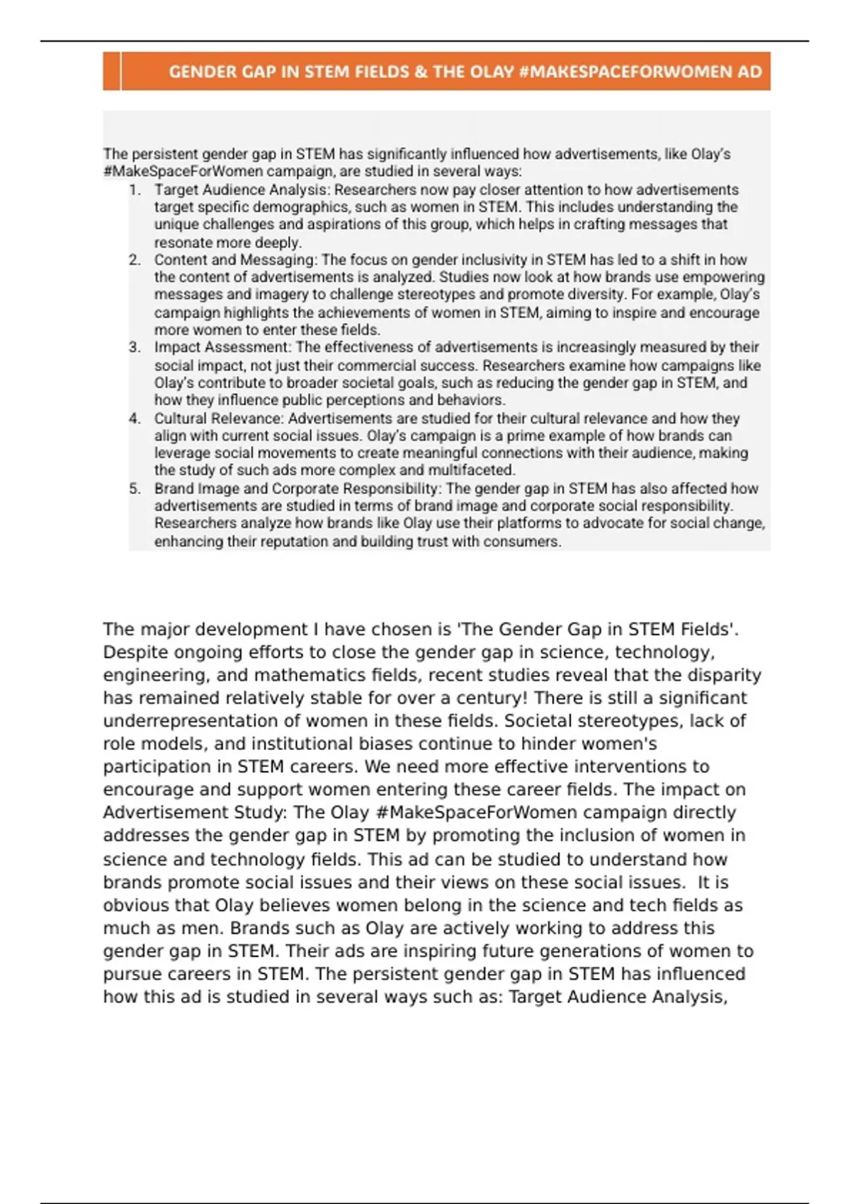 The major development I have chosen is 'The Gender Gap in STEM Fields'.