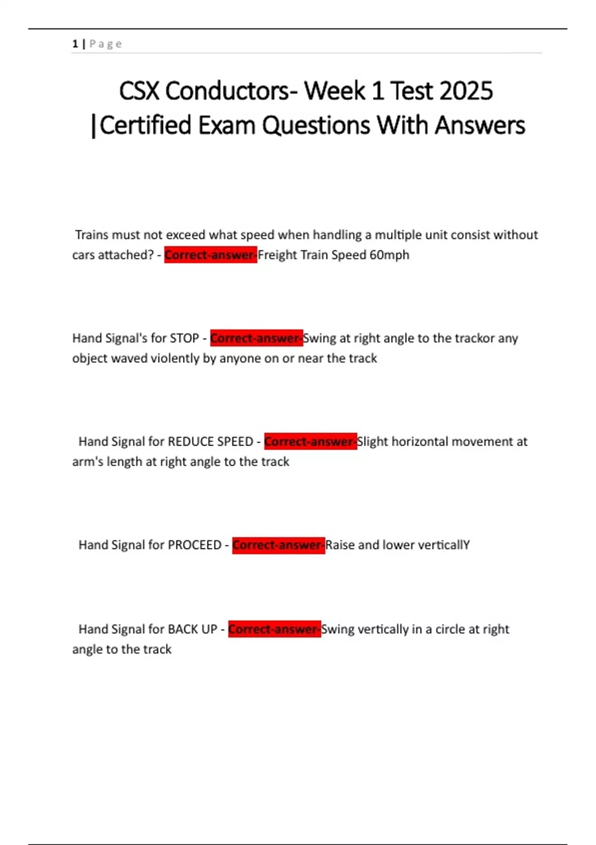 CSX Conductors - Week 1 Test 2025 |Certified Exam Questions With Answers