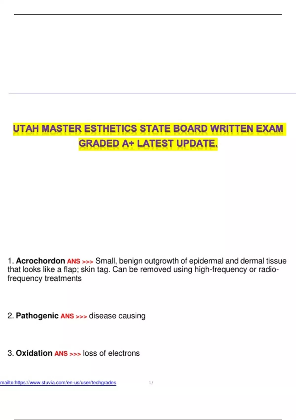 UTAH MASTER ESTHETICS STATE BOARD WRITTEN EXAM GRADED A+ LATEST UPDATE.