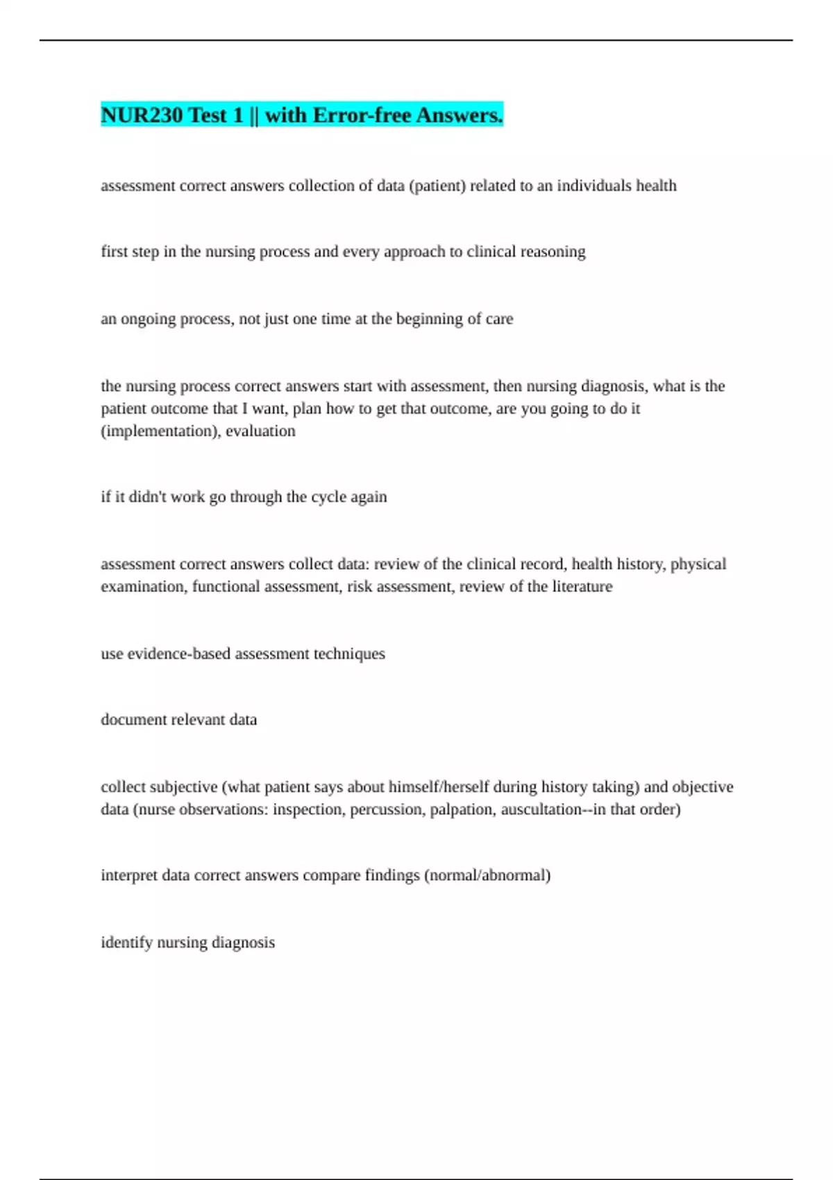 NUR230 Test 1 || with Error-free Answers.