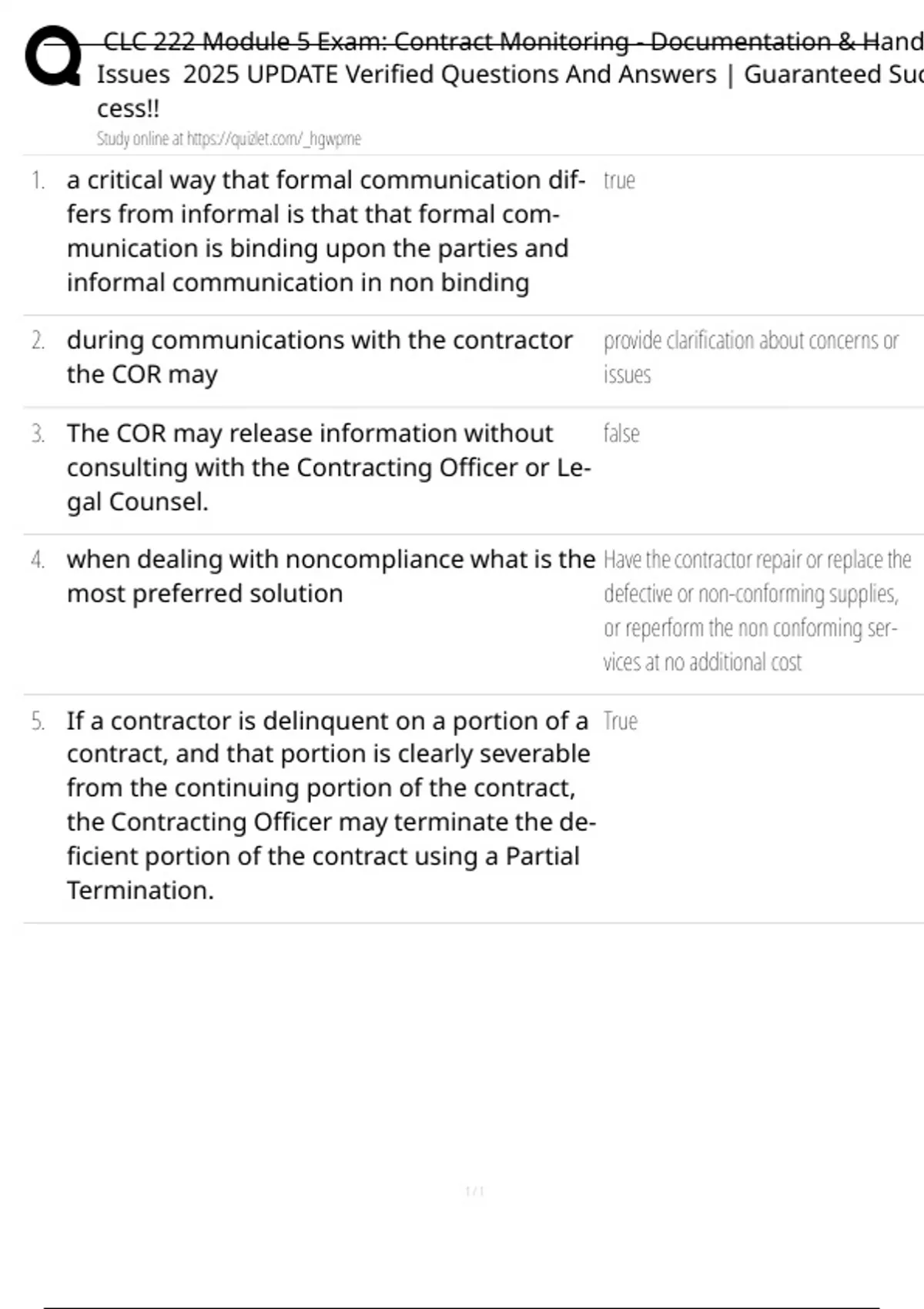 CLC 222 Module 5 Exam: Contract Monitoring - Documentation & Hand