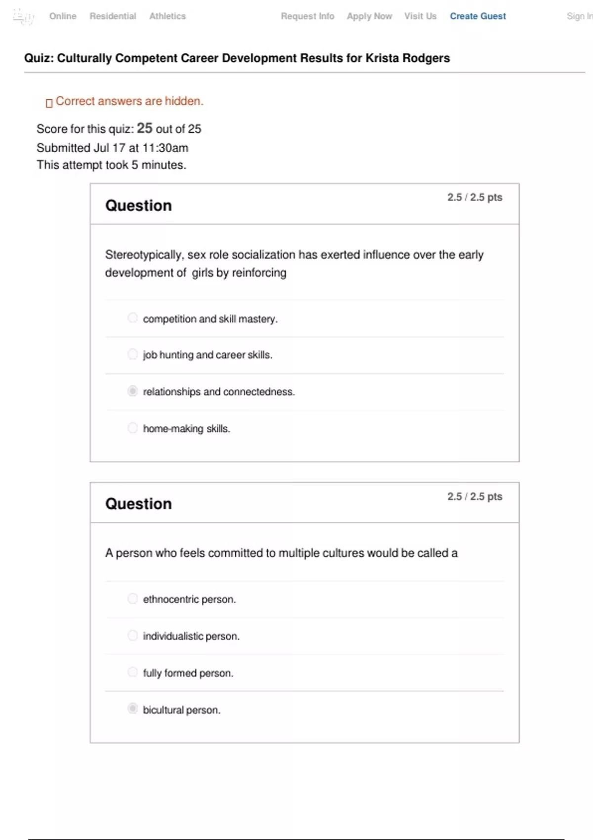Quiz: Culturally Competent Career Development Results for Krista Rodgers