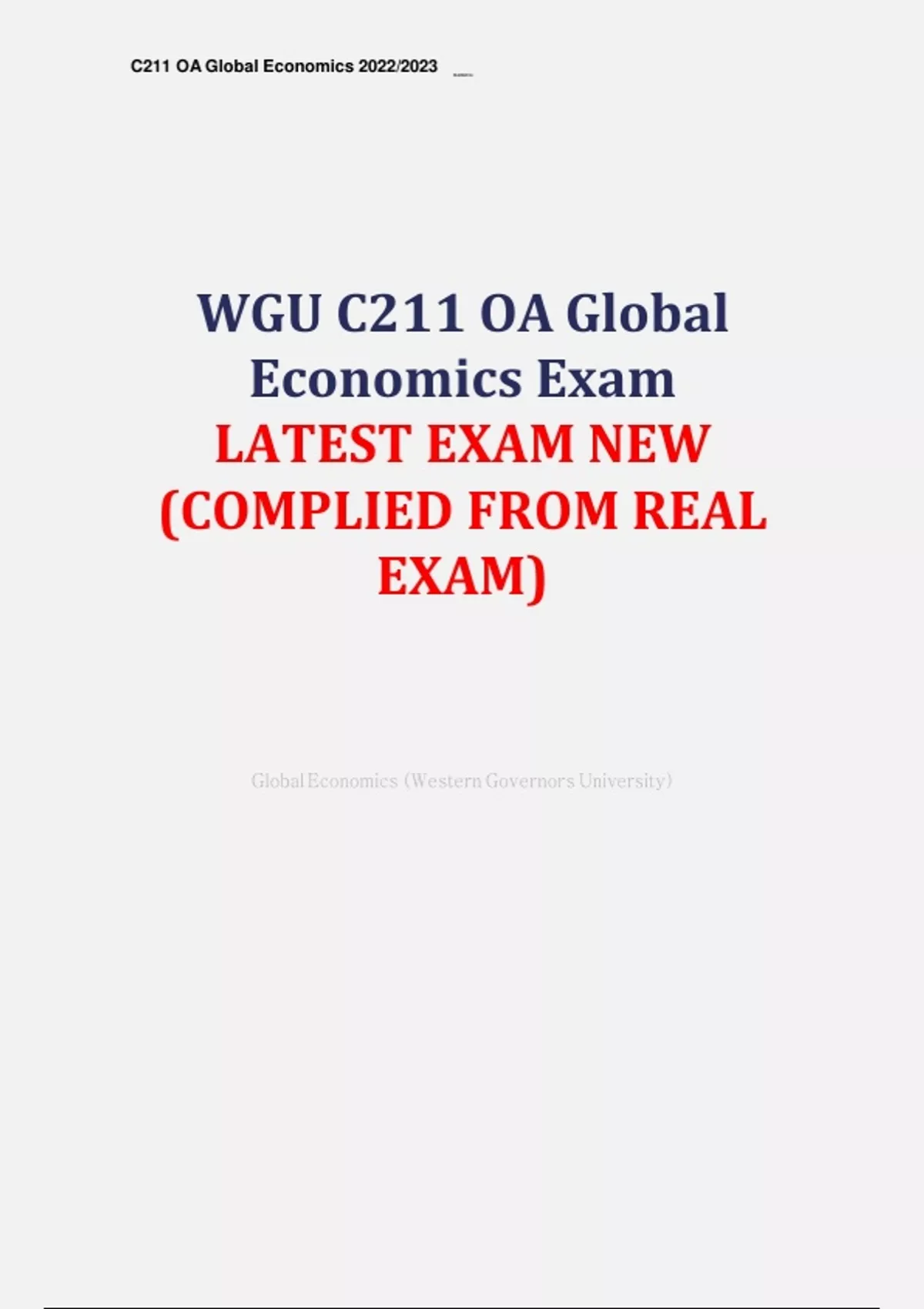 WGU C211 OA Global Economics Exam LATEST EXAM NEW (COMPLIED FROM REAL EXAM)