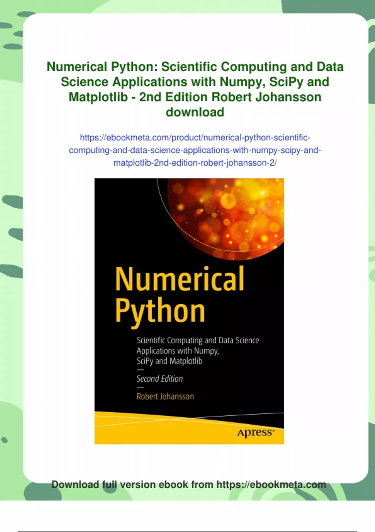 Summary Numerical Python: Scientific Computing and Data Science Applications with Numpy, SciPy and Matplotlib - 2nd Edition Robert Johansson - PDF Download