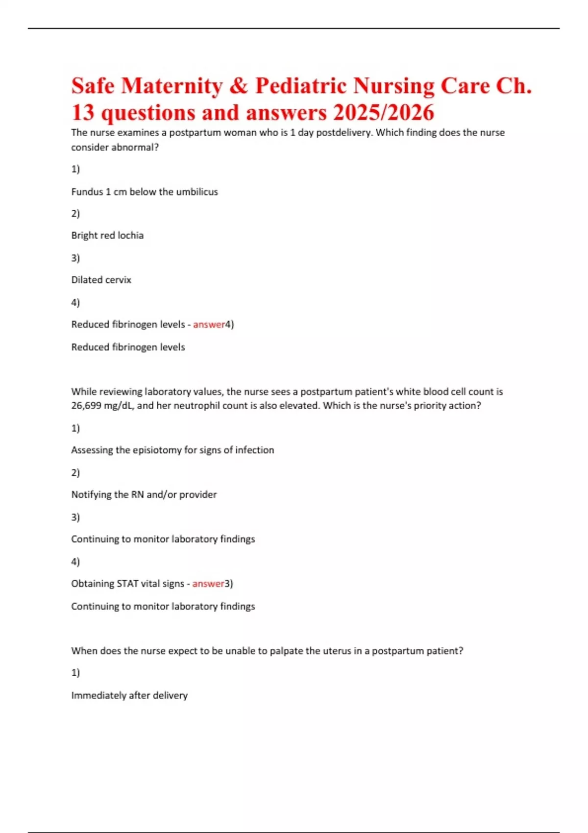 When does the nurse expect to be unable to palpate the uterus in a postpartum patient?