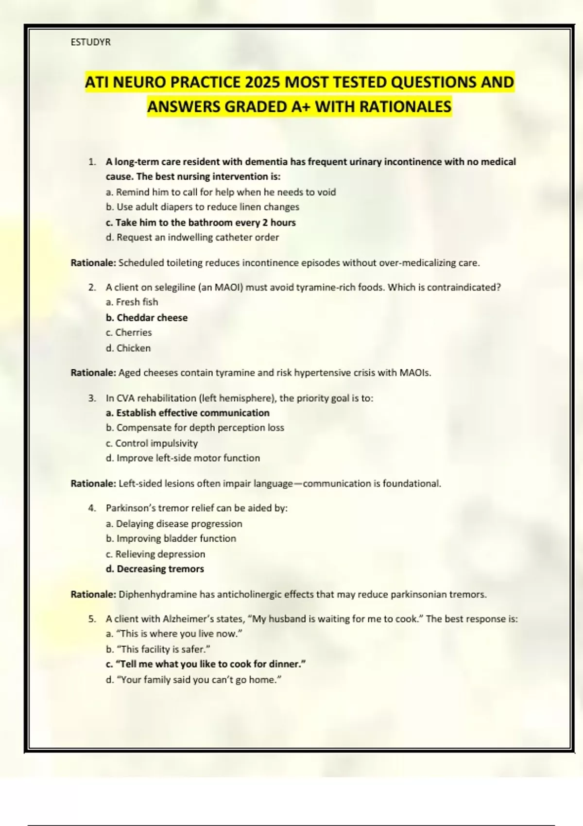 ATI NEURO PRACTICE 2025 MOST TESTED QUESTIONS AND