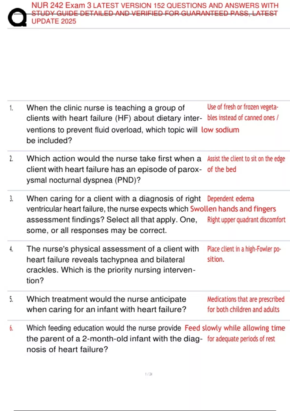 NUR 242 Exam 3 LATEST VERSION 152 QUESTIONS AND ANSWERS WITH STUDY GUIDE DETAILED AND VERIFIED FOR GUARANTEED PASS, LATEST UPDATE 2025
