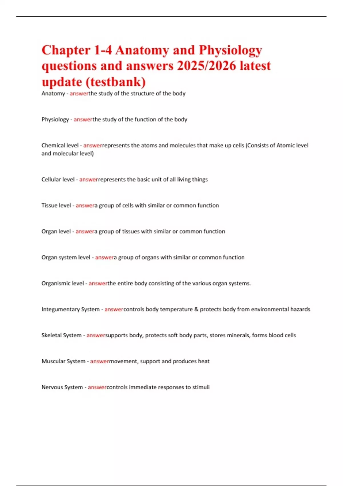 Organismic level - answerthe entire body consisting of the various organ systems.