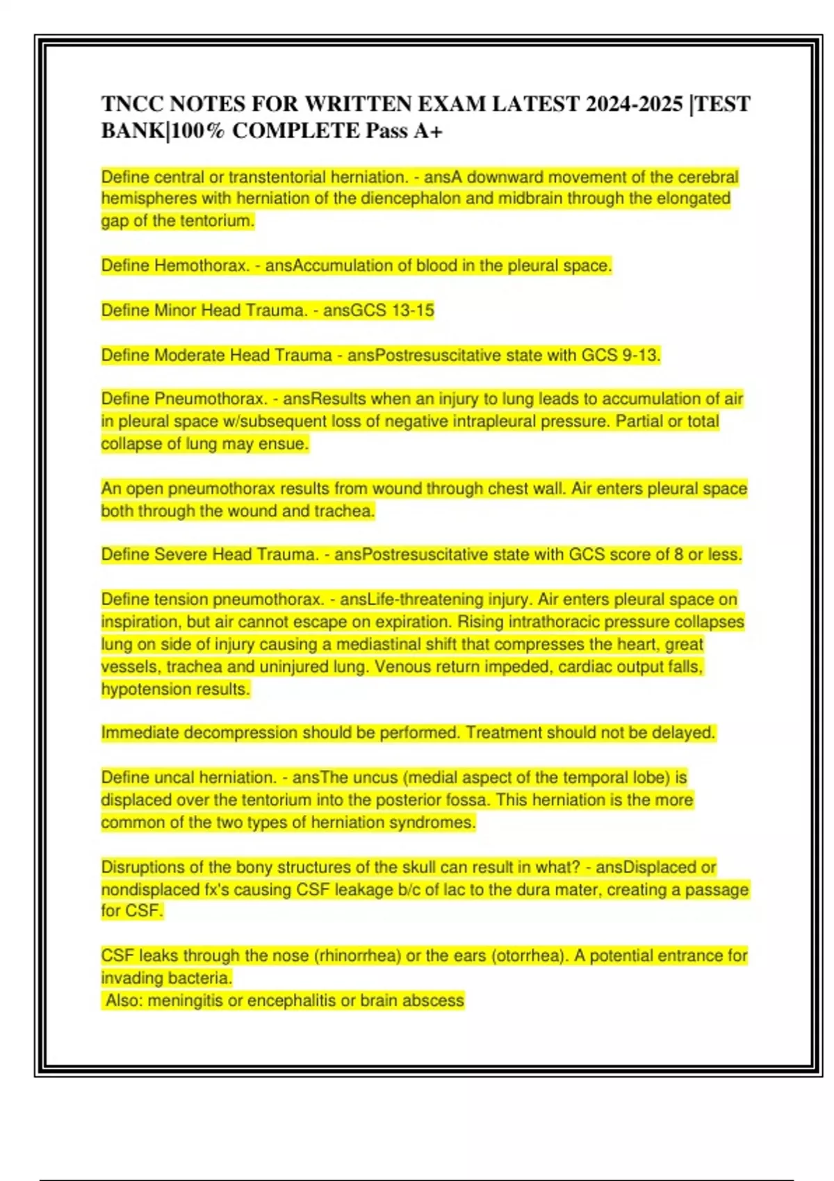 , TNCC NOTES FOR WRITTEN EXAM LATEST 2024-2025 |TEST