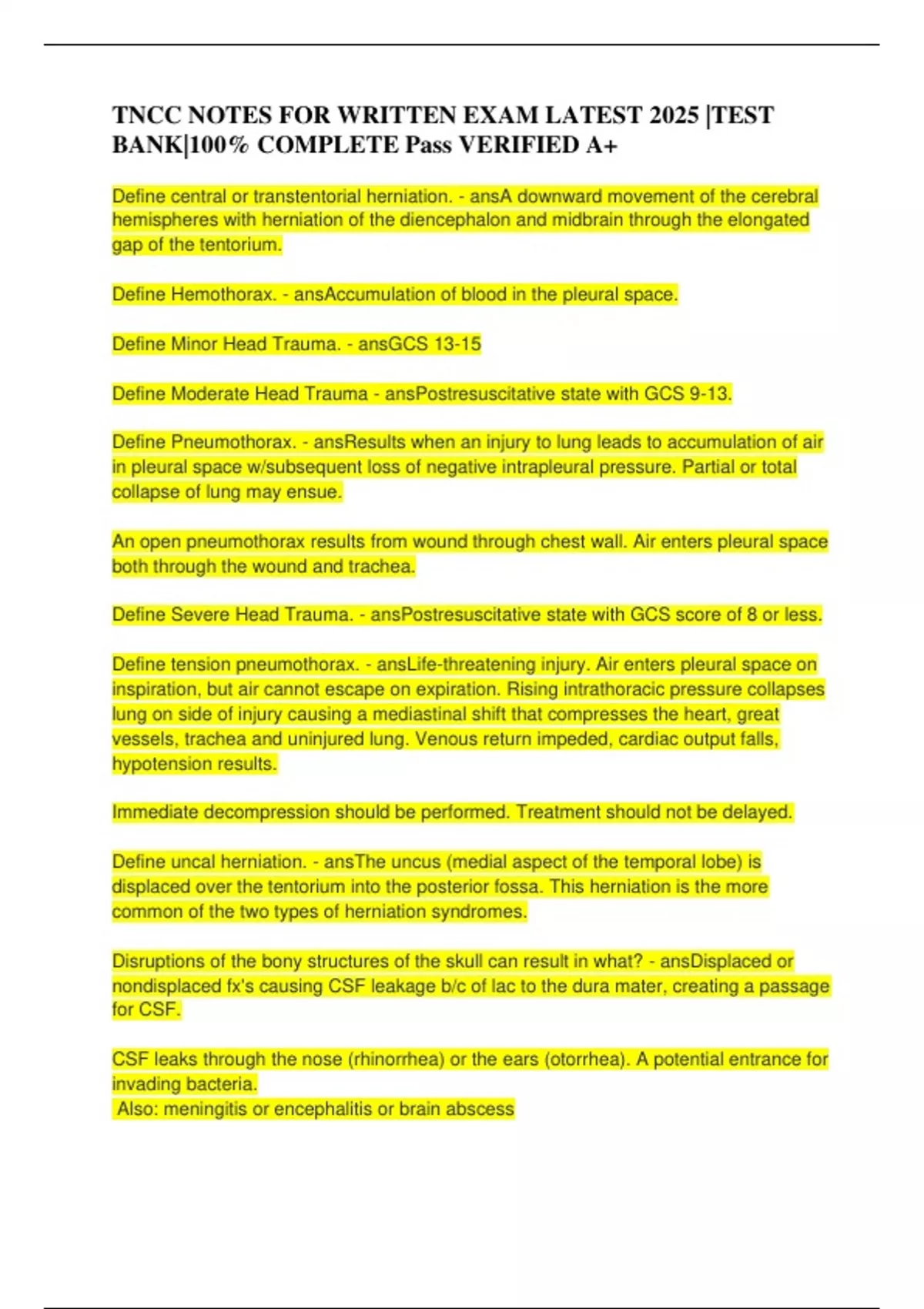 ,TNCC NOTES FOR WRITTEN EXAM LATEST 2025 |TEST