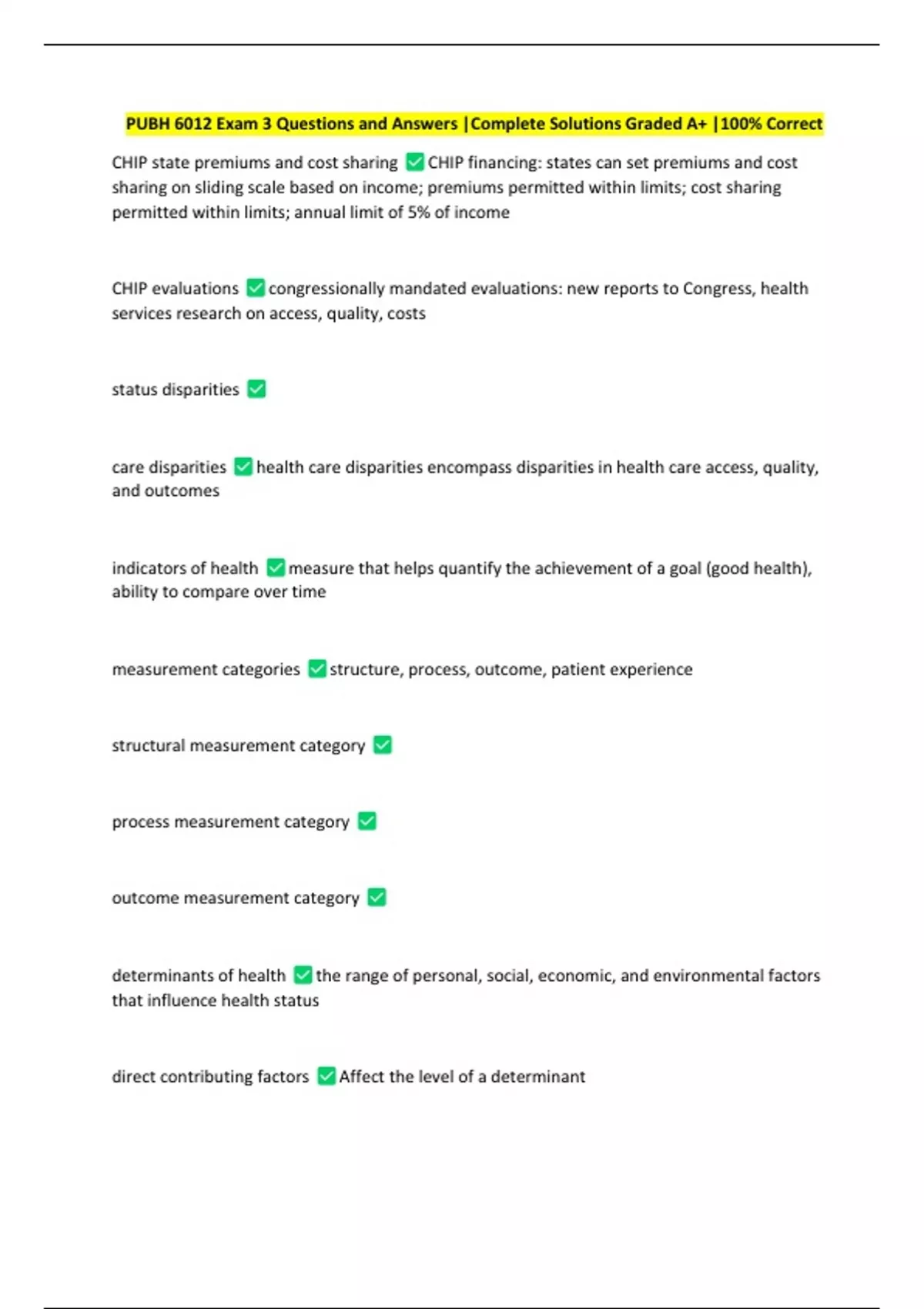PUBH 6012 Exam 3 Questions and Answers |Complete Solutions Graded A+ |100% Correct