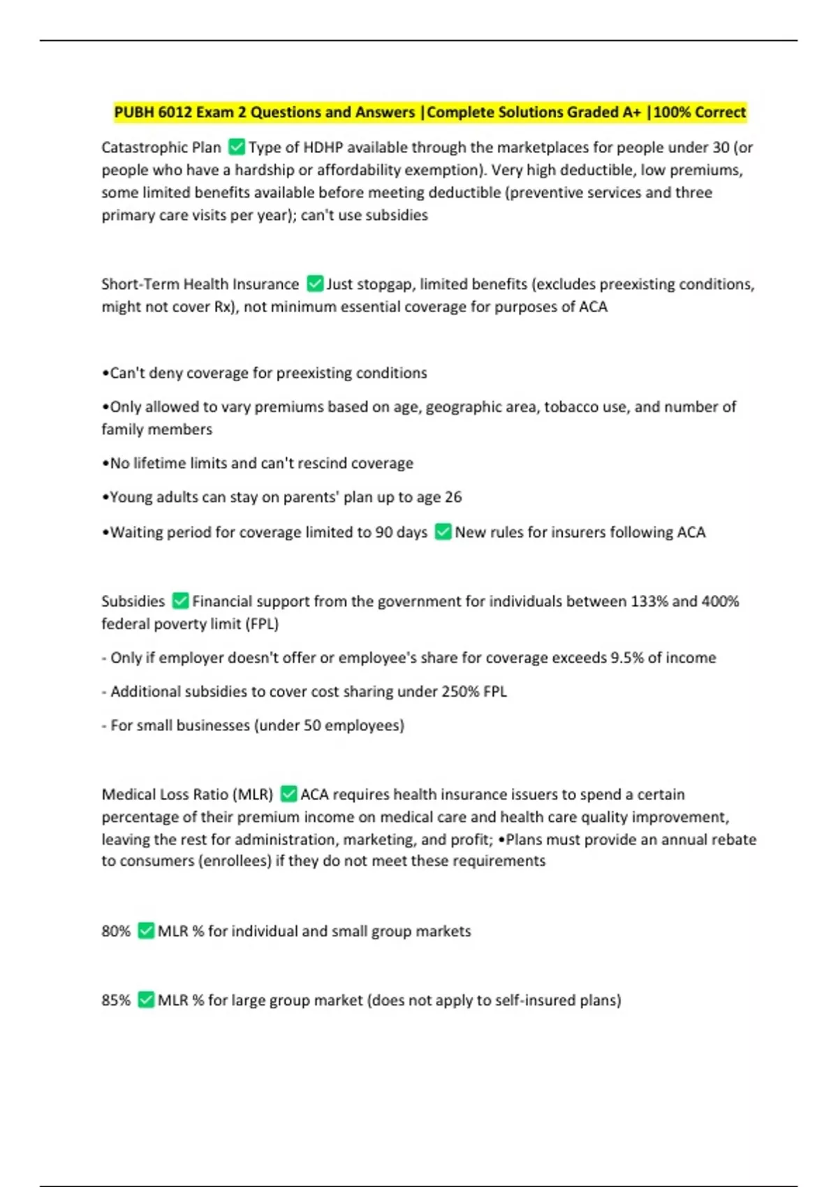PUBH 6012 Exam 2 Questions and Answers |Complete Solutions Graded A+ |100% Correct