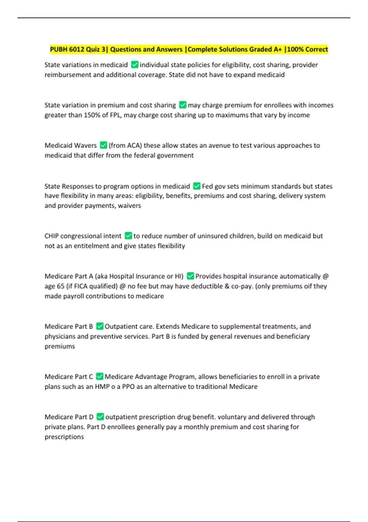 PUBH 6012 Quiz 3| Questions and Answers |Complete Solutions Graded A+ |100% Correct