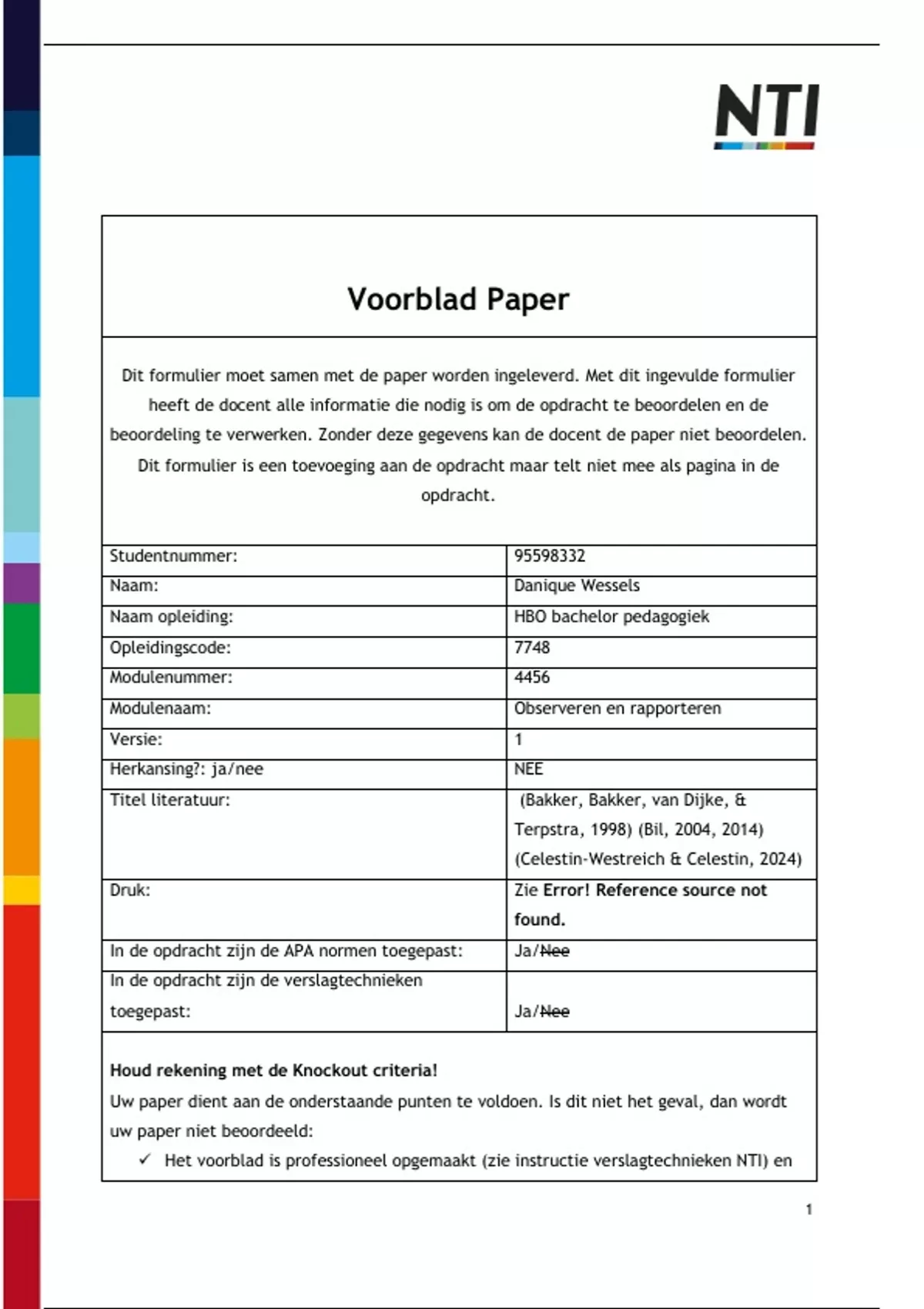 Dit formulier moet samen met de paper worden ingeleverd. Met dit ingevulde formulier