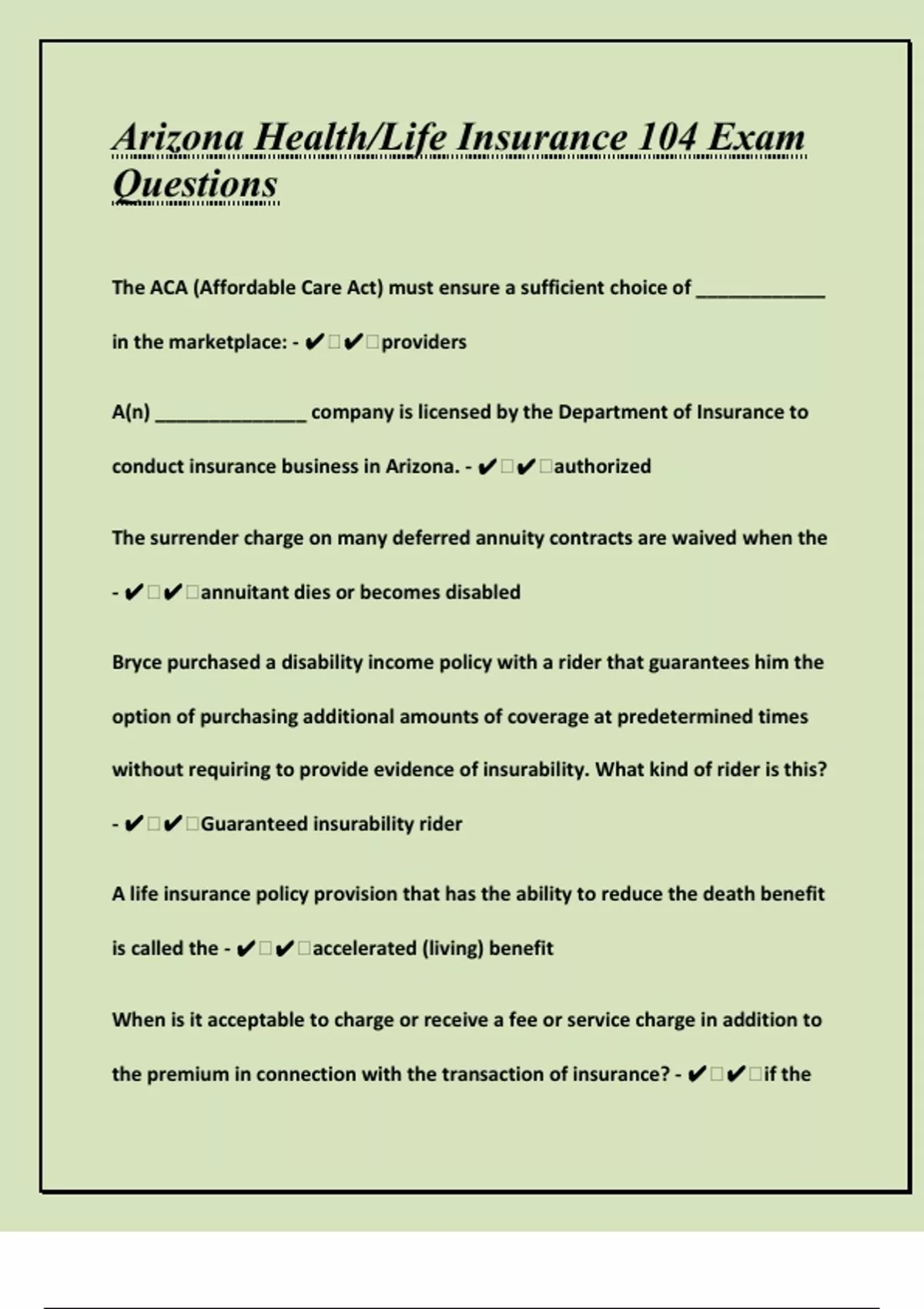 - ✔ ✔ Guaranteed insurability rider