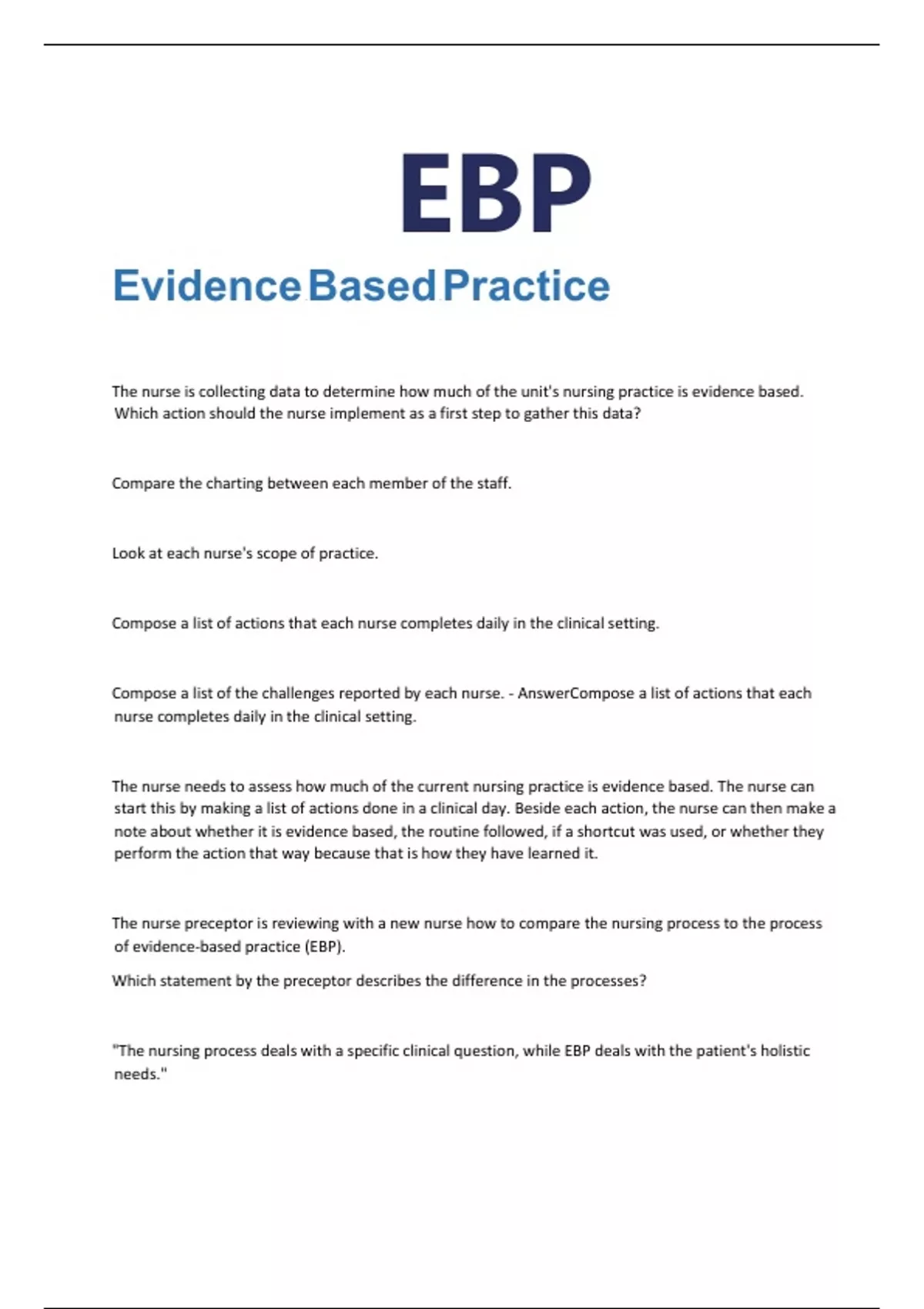Answer"The nursing process deals with the patient's holistic needs and EBP deals with a clinical