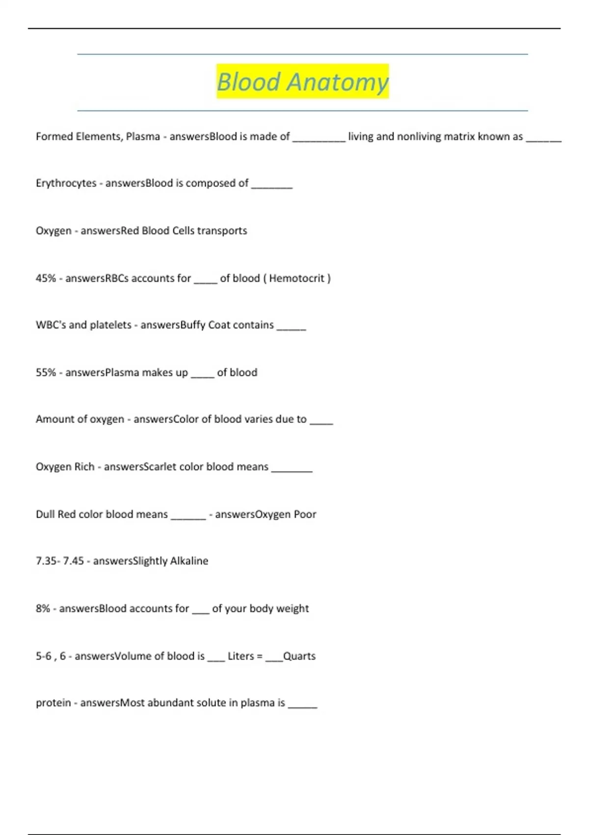 5-6 , 6 - answersVolume of blood is ___ Liters = ___Quarts