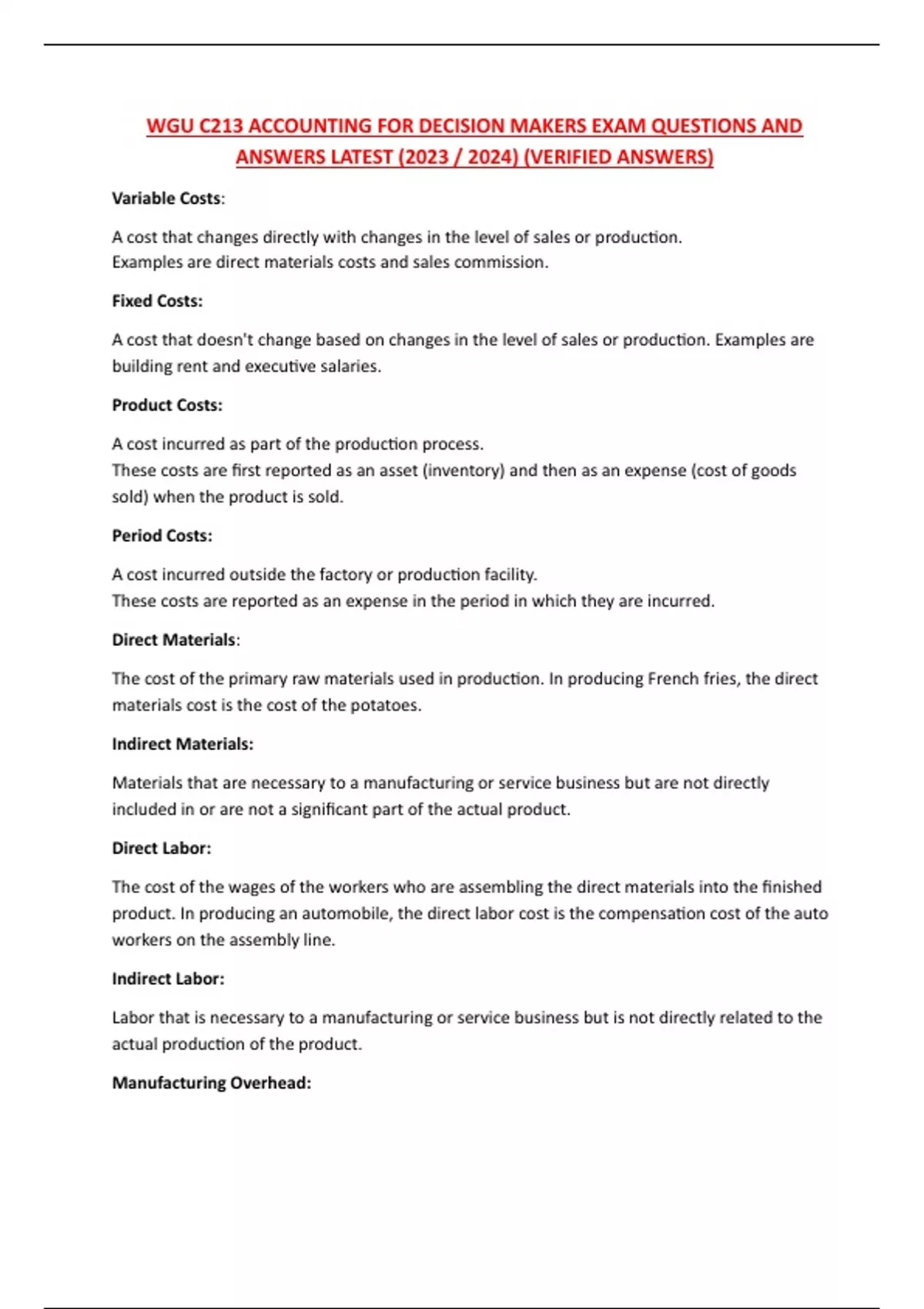 WGU C213 Final Exam Verified exam questions with answers Year: 2025 Course: Accounting Author: PassPapersPro