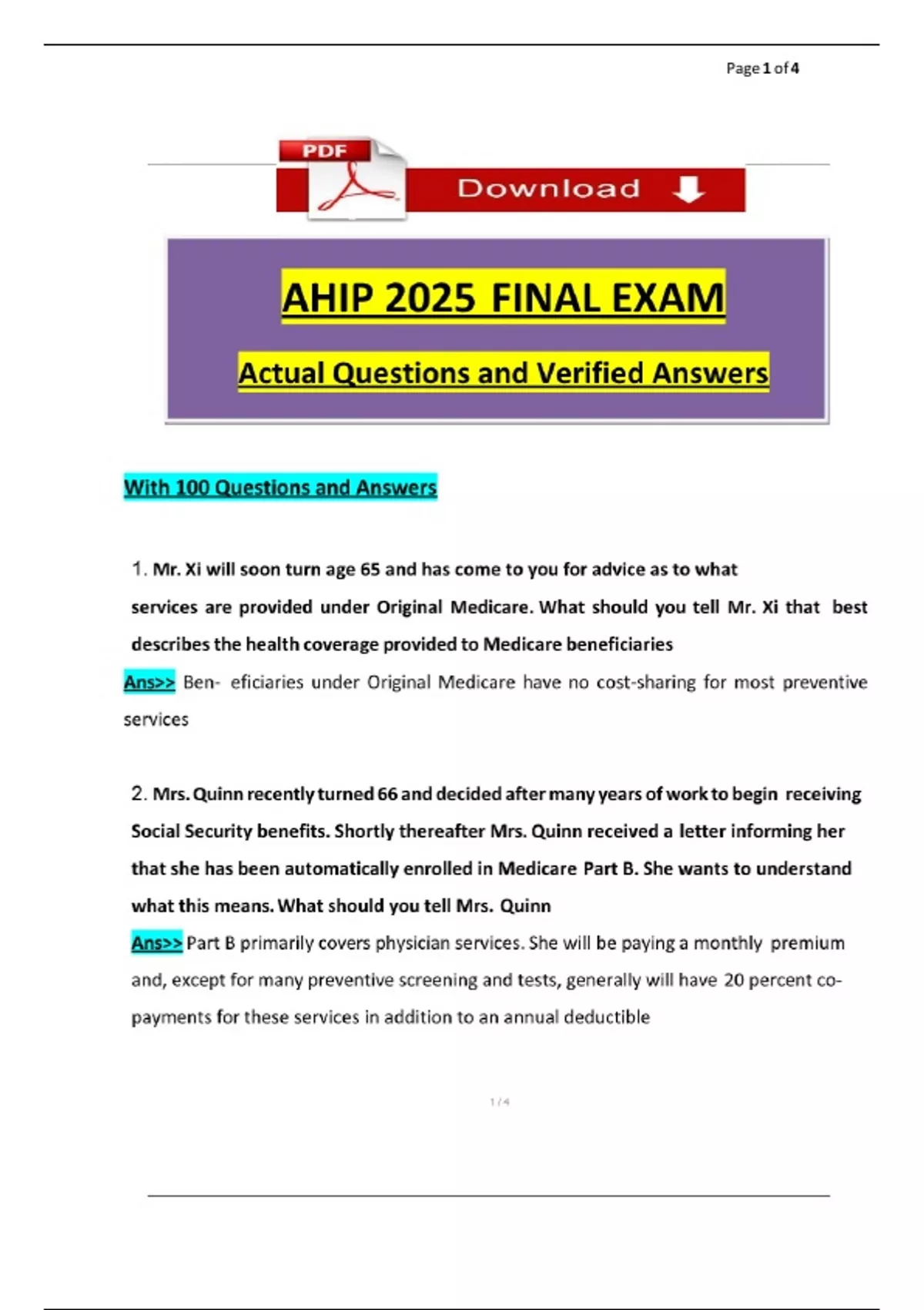 2025/2024 AHIP Final Exam Questions and Verified Answers, 100% Guarantee Pass