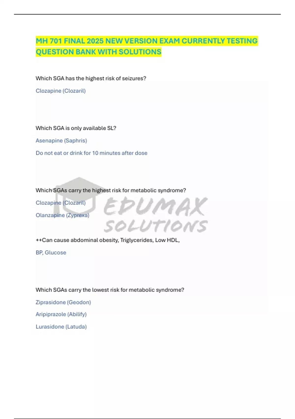 MH 701 FINAL 2025 NEW VERSION EXAM CURRENTLY TESTING