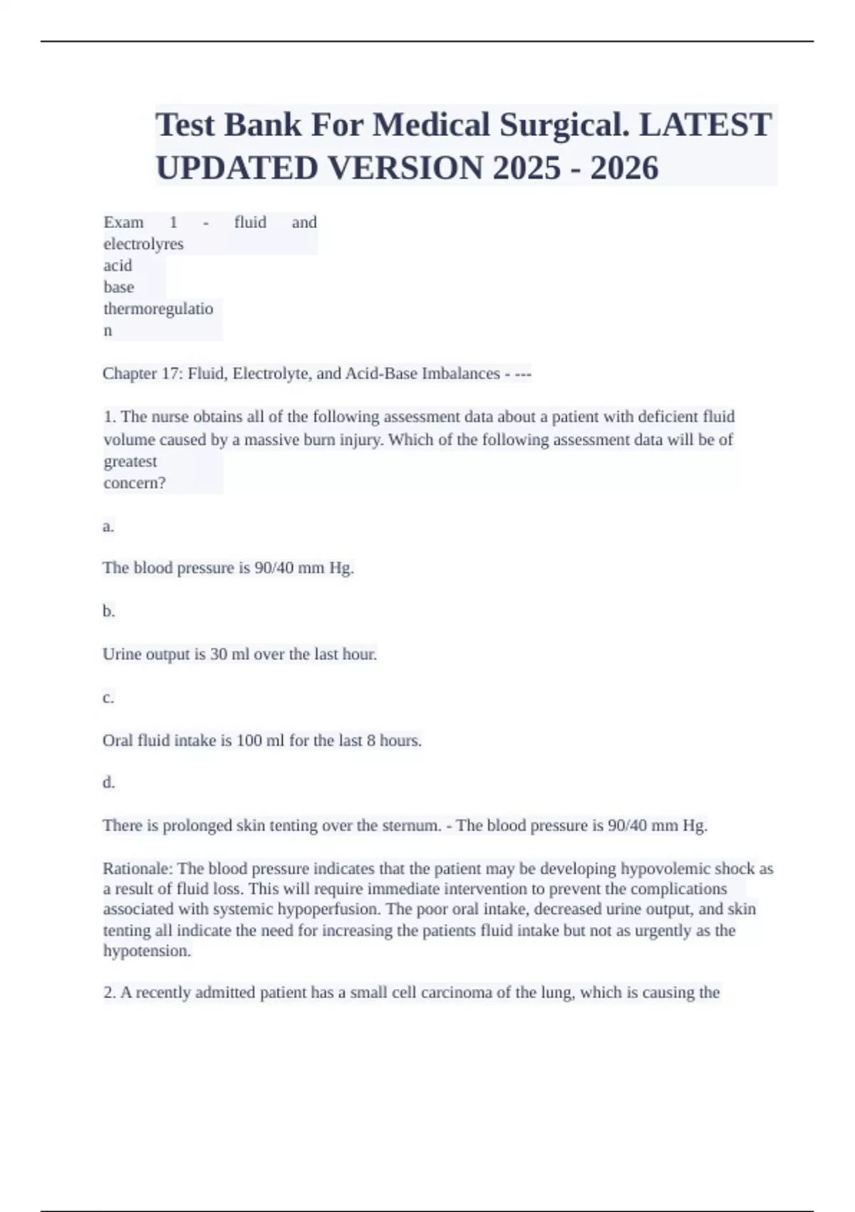 1. The nurse obtains all of the following assessment data about a patient with deficient fluid