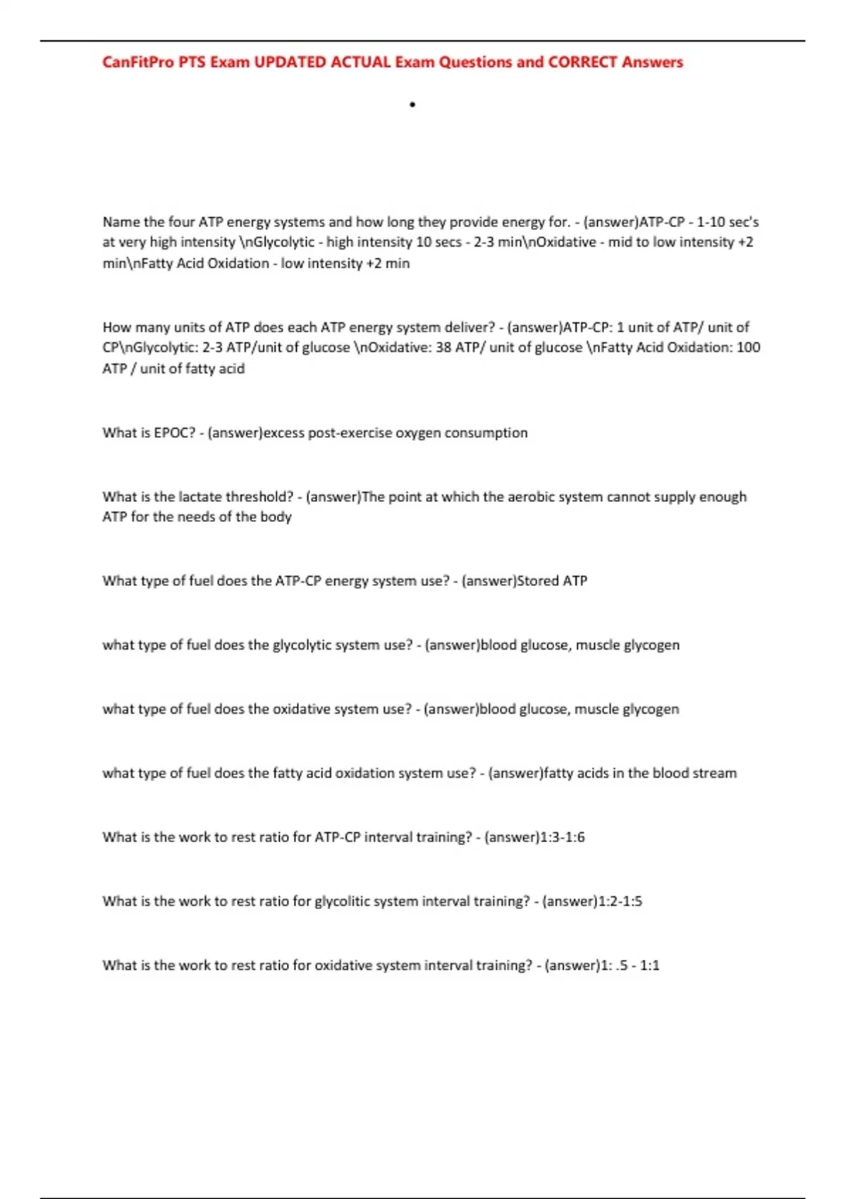 , CanFitPro PTS Exam UPDATED ACTUAL Exam Questions and CORRECT Answers