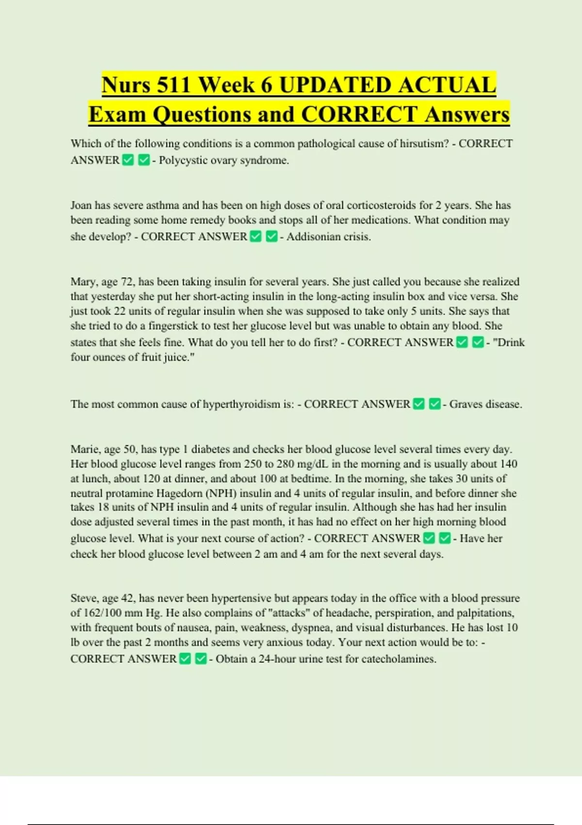 she develop? - CORRECT ANSWER - Addisonian crisis.