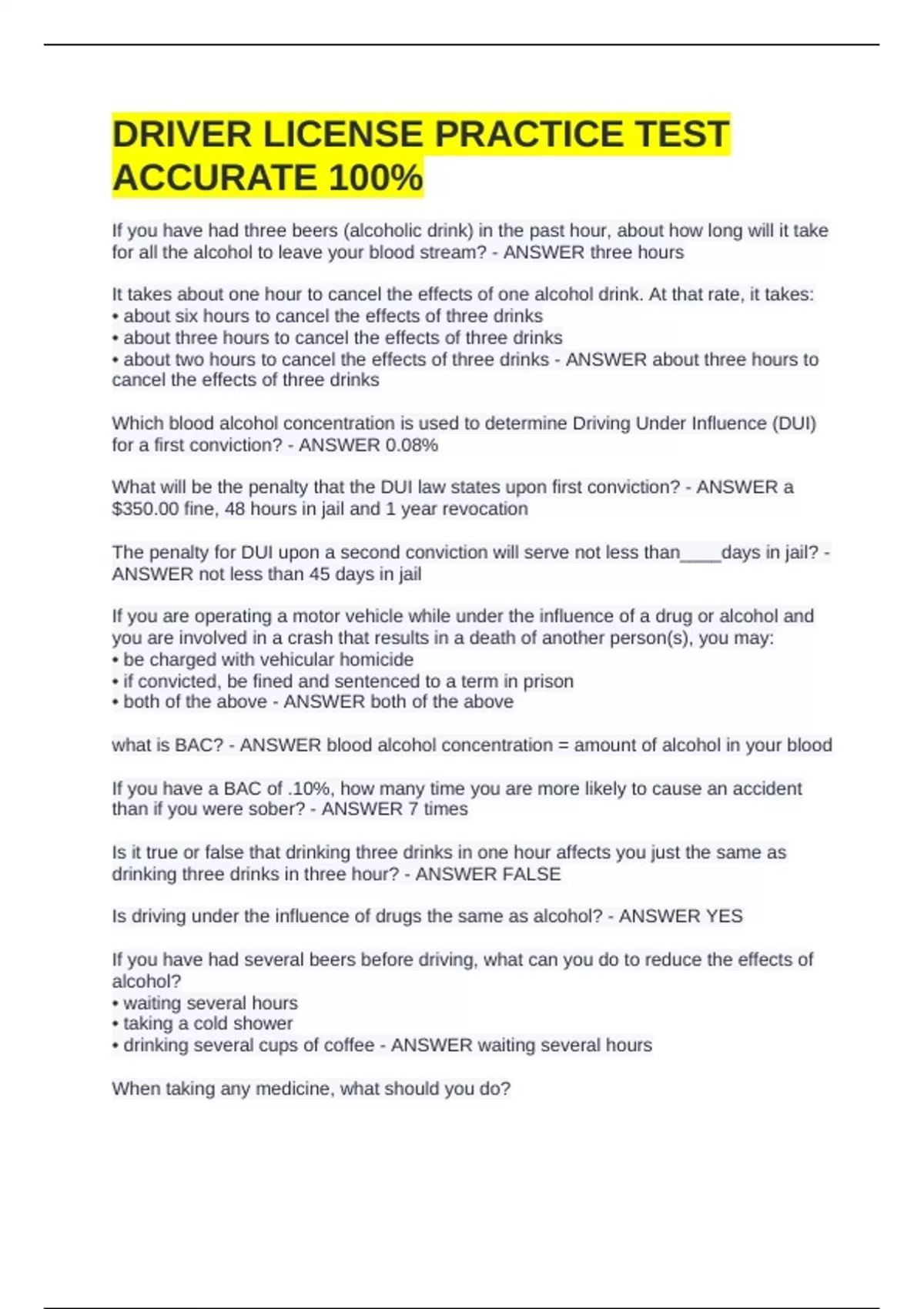 what is BAC? - ANSWER blood alcohol concentration = amount of alcohol in your blood