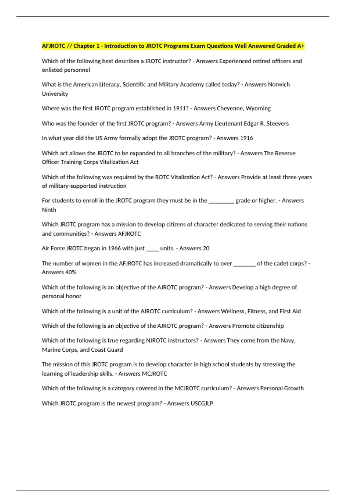 Which of the following best describes a JROTC instructor? - Answers Experienced retired officers and