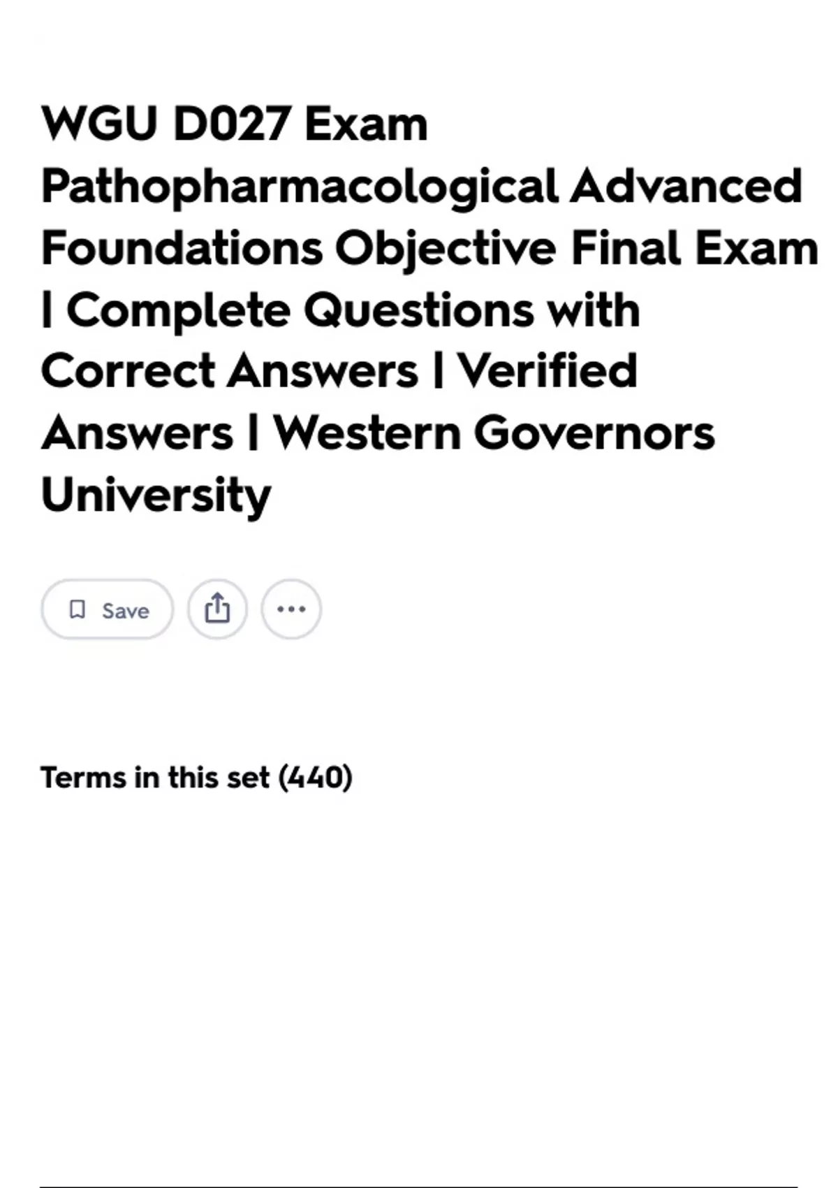 WGU D027 Exam Pathopharmacological Advanced Foundations Objective Final Exam | Complete Questions with Correct Answers | Verified Answers | Western Governors University