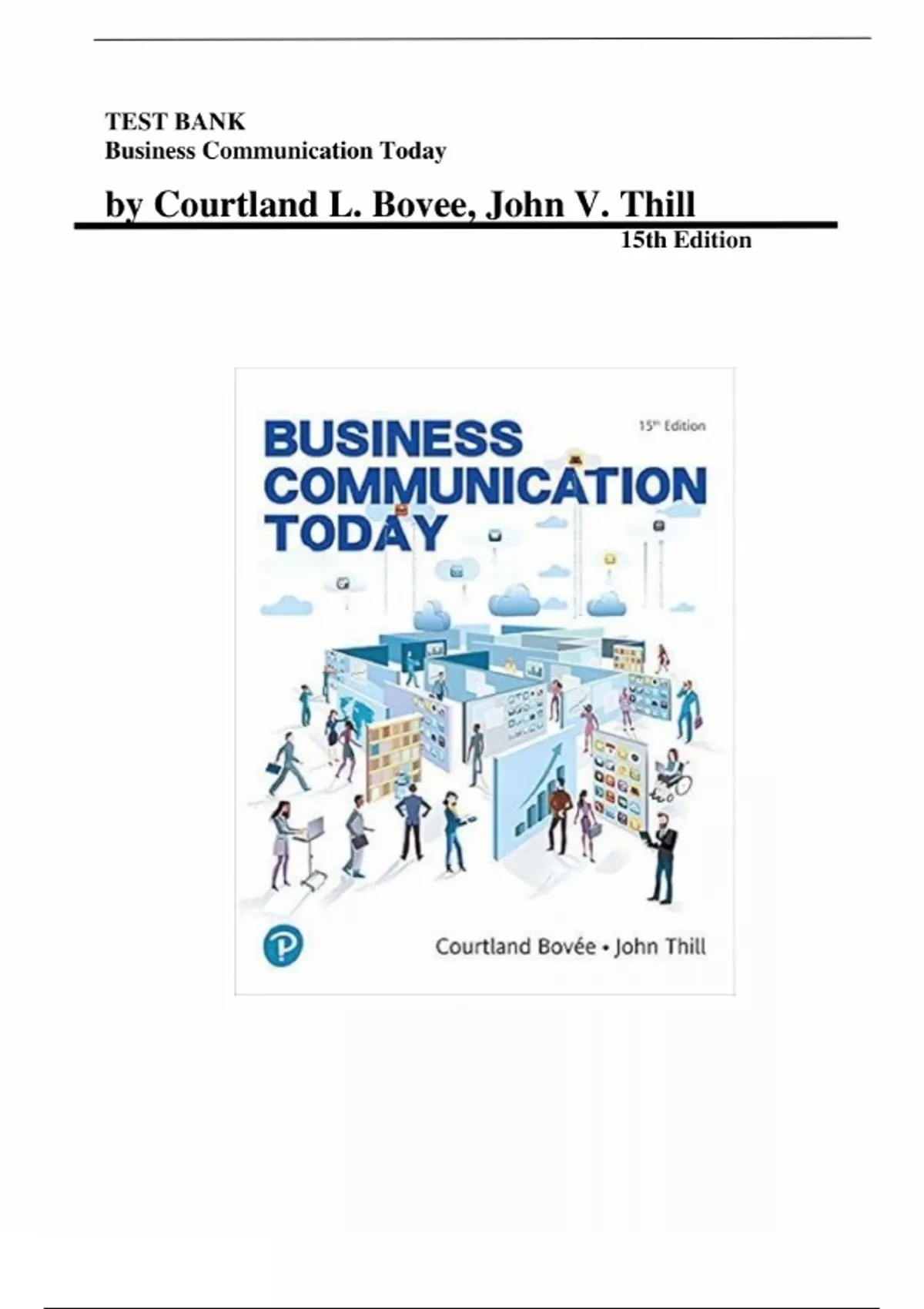 Test Bank for Business Communication Today, 15th edition by Courtland L. Bovee, John V. Thill |Chapter 1-19 |Professional Communication in a Digital, Social, Mobile World, Collaboration, Interpersonal Communication, and Business Etiquette, Communication Challenges in a Diverse, Global Marketplace, Planning Business Messages, Writing Business Messages, Completing Business Messages, Digital Media, Social Media, Visual Media, Writing Routine and Positive Messages Writing Negative Messages, Writing Persuasive Messages, Finding, Evaluation, and Processing Information, Planning Reports and Proposals Writing and Completing Reports and Proposals, Developing Presentations in a Social Media Environment, Enhancing Presentations with Slides and Other Visuals, Building Careers and Writing Résumés Applying and Interviewing for Employment