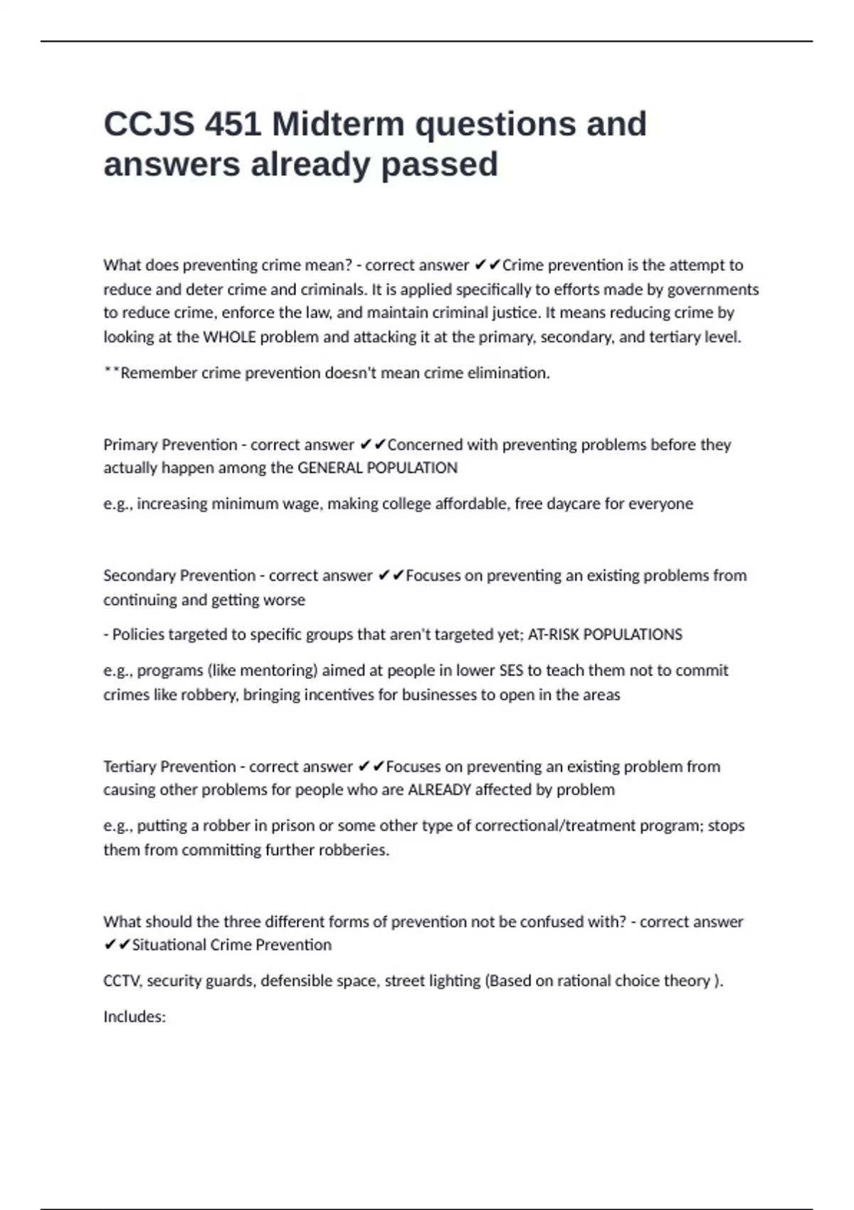 What does preventing crime mean? - correct answer ✔✔Crime prevention is the attempt to