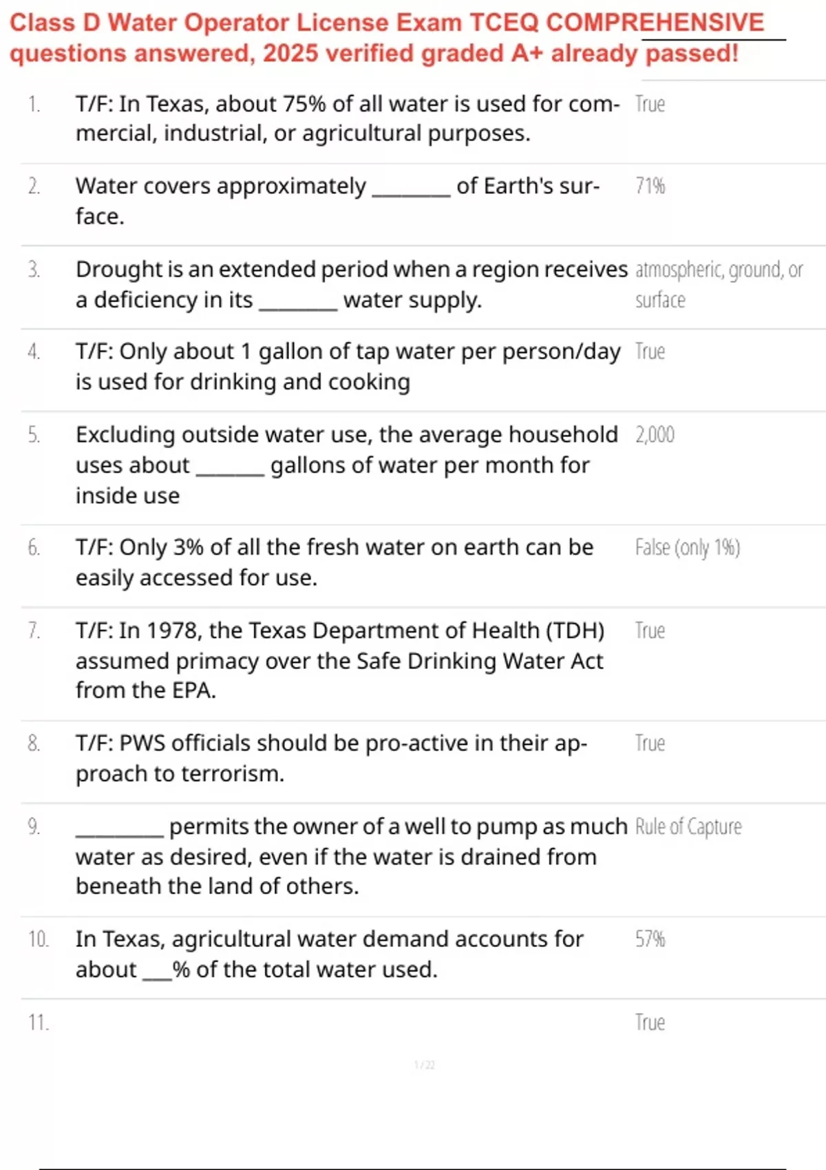 Class D Water Operator License Exam TCEQ COMPREHENSIVE