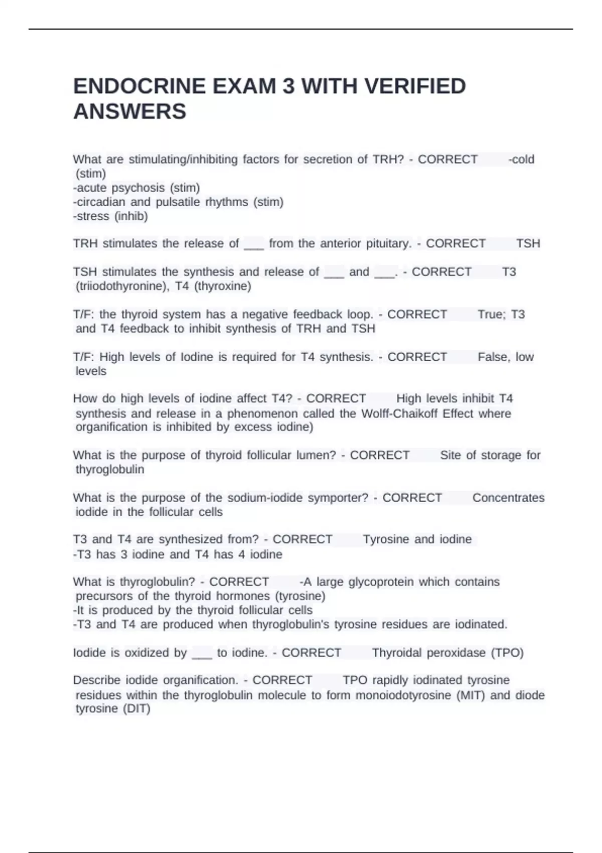 ENDOCRINE EXAM 3 WITH VERIFIED