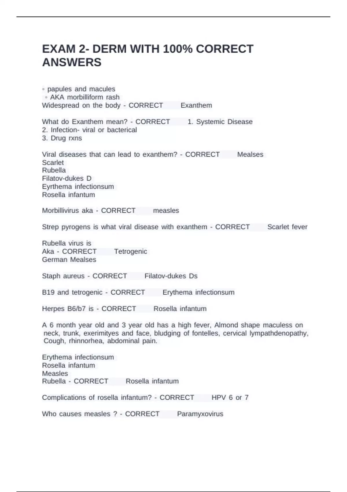 Widespread ron rthe rbody r- rCORRECT✅✅Exanthem