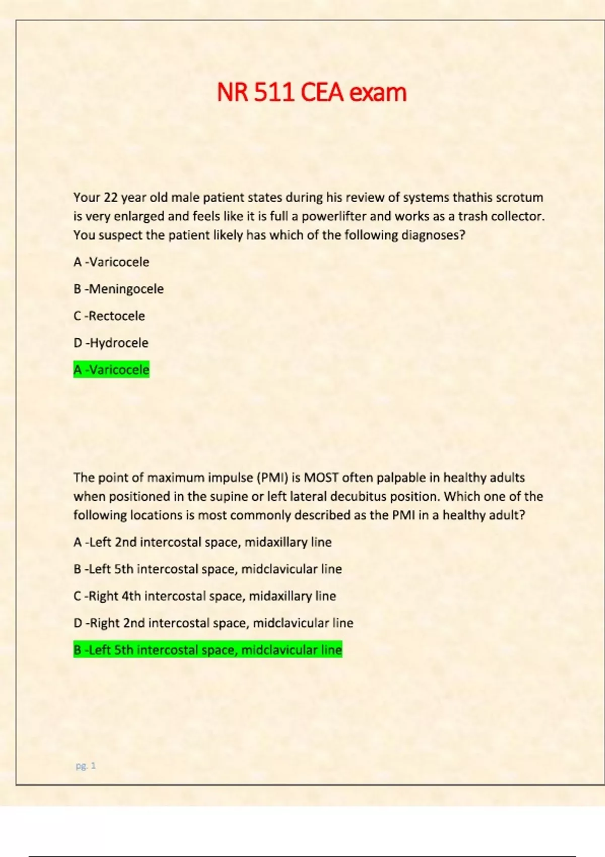 nr 511 cea exam latest edition exam q