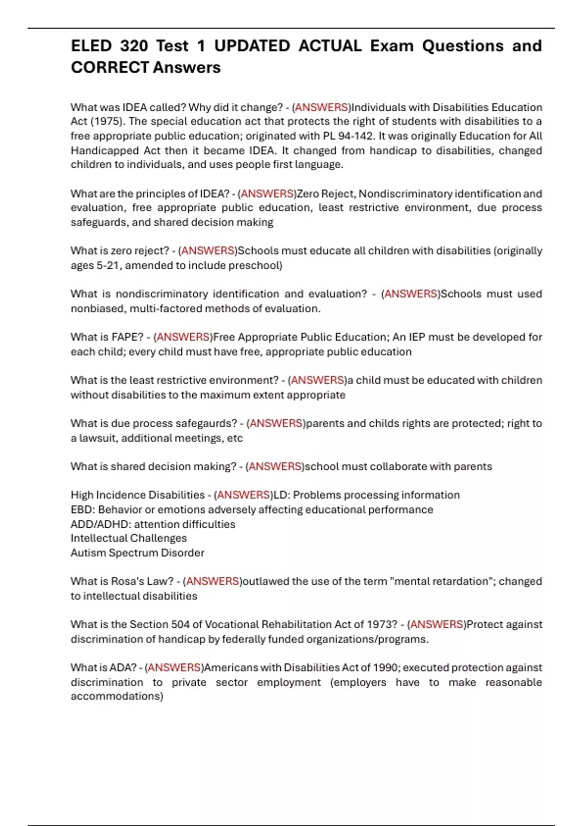 What is FAPE? - (ANSWERS)Free Appropriate Public Education; An IEP must be developed for