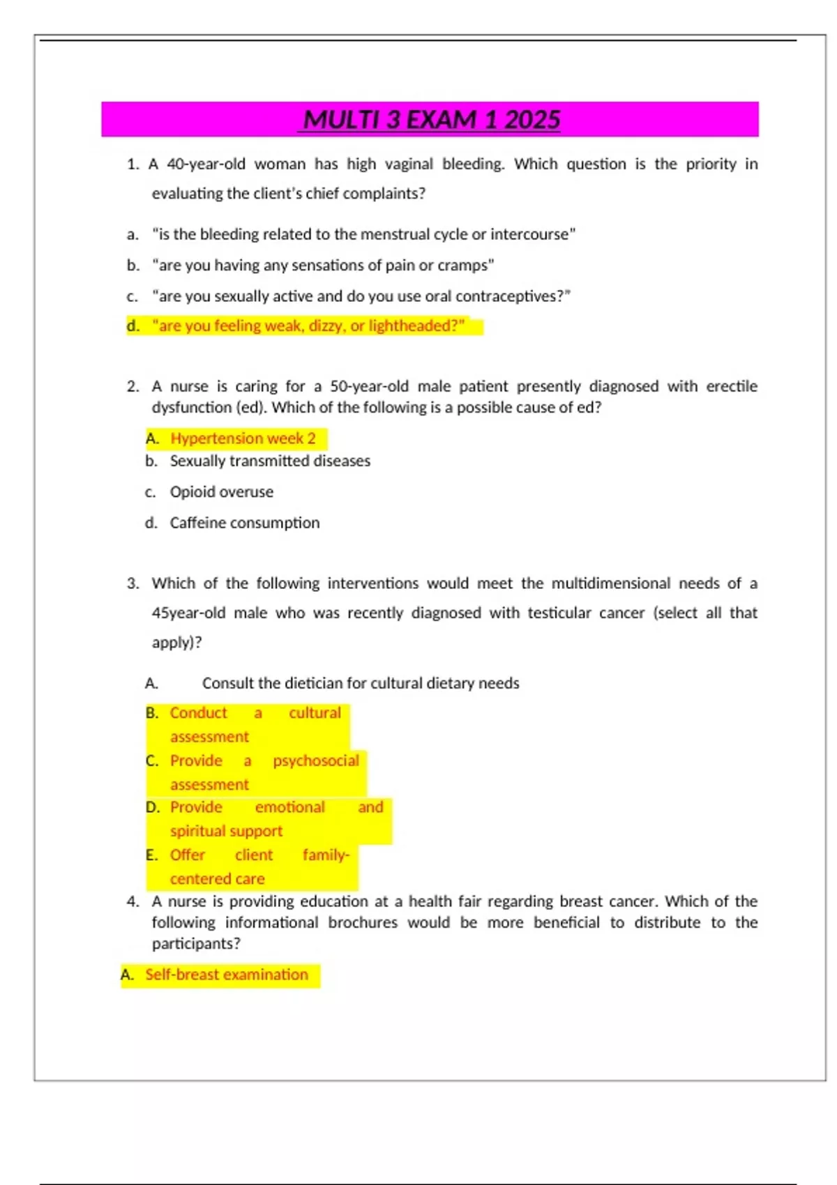 2. A nurse is caring for a 50-year-old male patient presently diagnosed with erectile