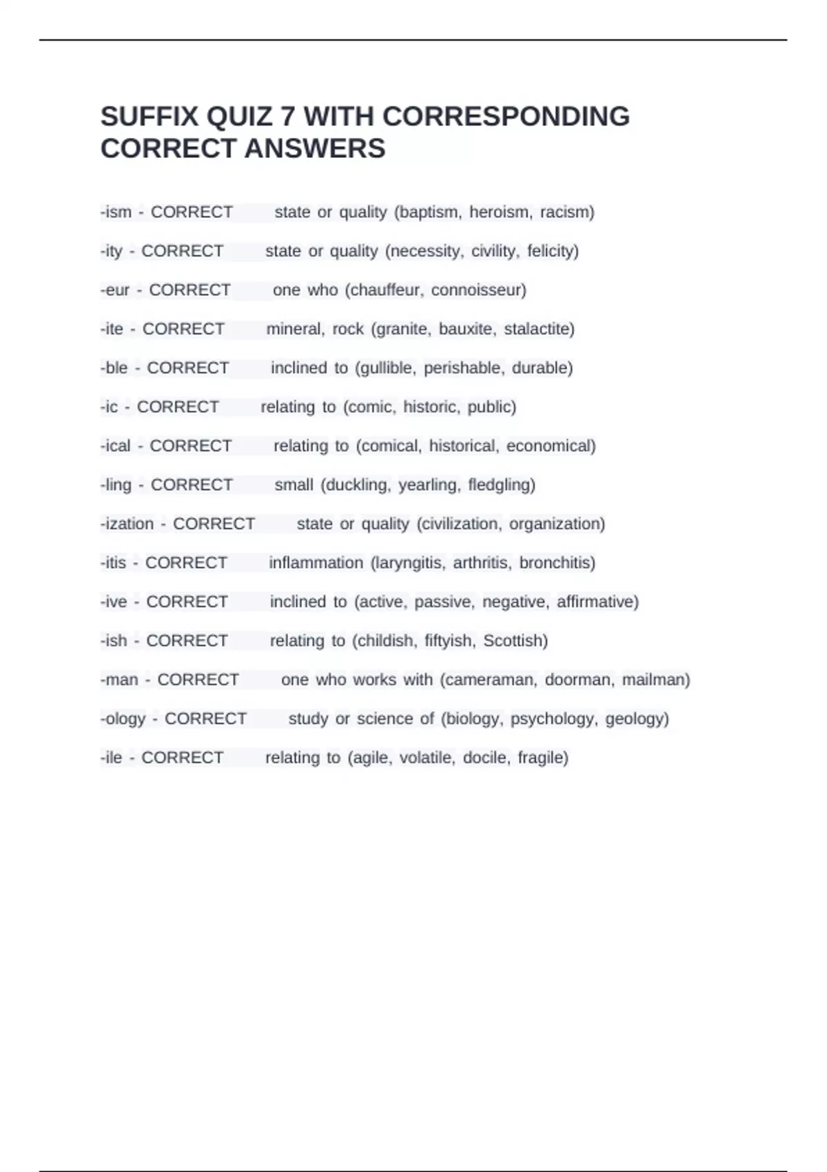 SUFFIX QUIZ 7 WITH CORRESPONDING