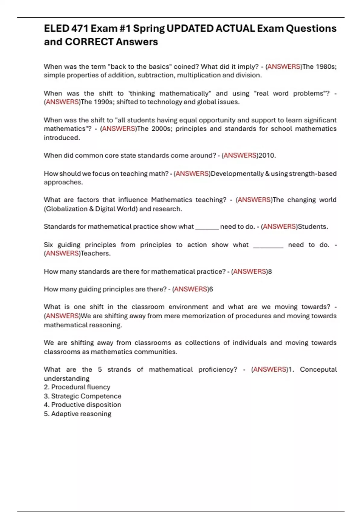 , ELED 471 Exam #1 Spring UPDATED ACTUAL Exam Questions