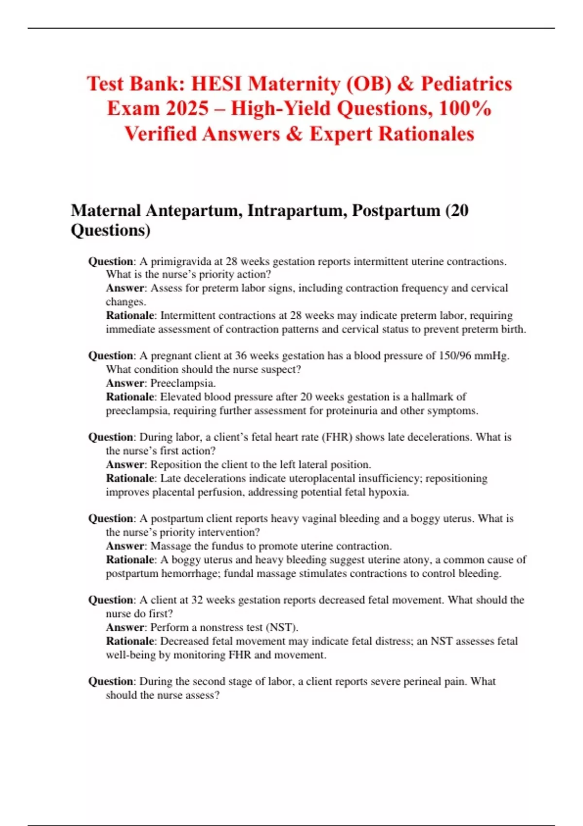 Question: A client at 38 weeks gestation reports regular contractions every 5 minutes. What