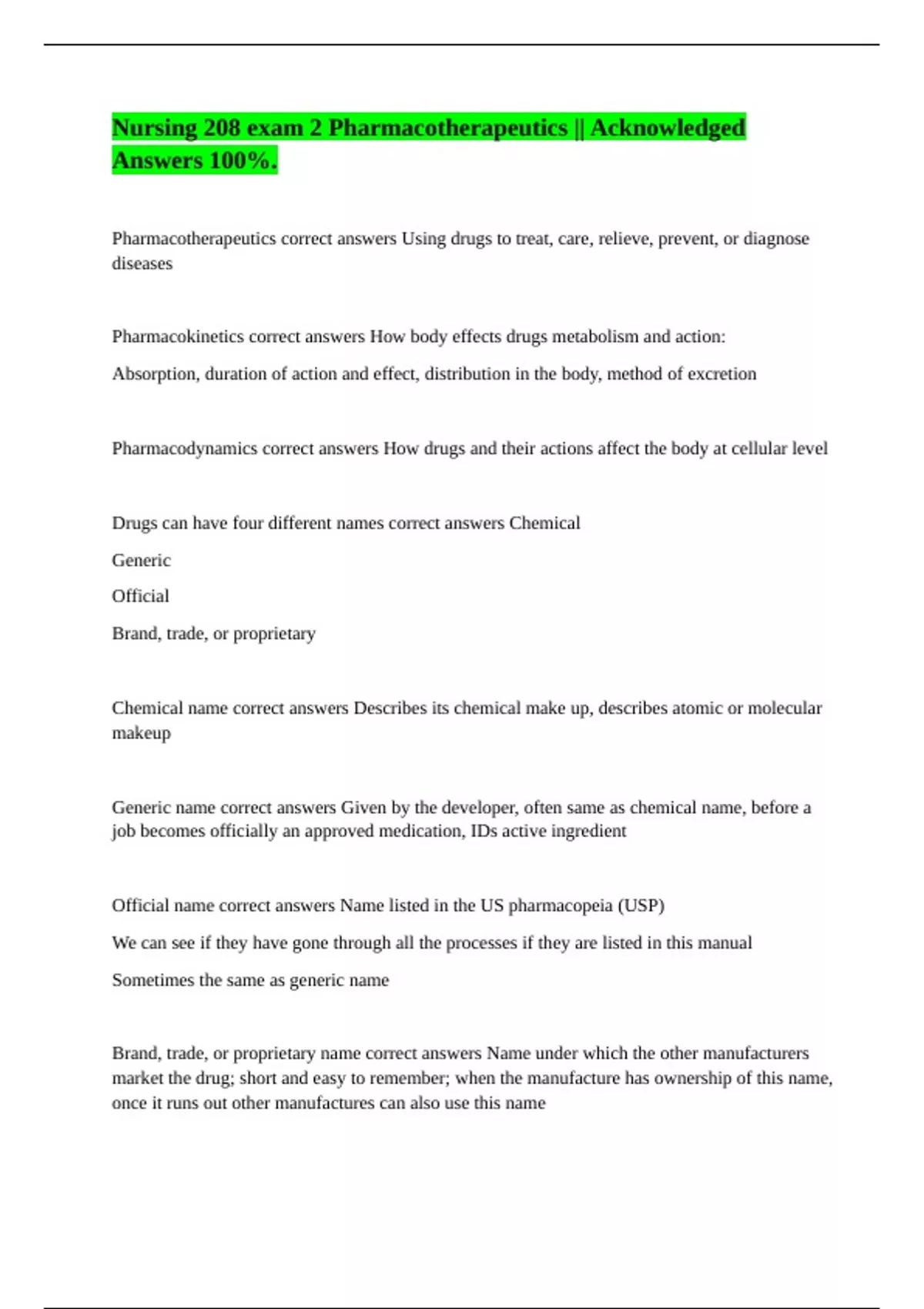 Pharmacotherapeutics correct answers Using drugs to treat, care, relieve, prevent, or diagnose